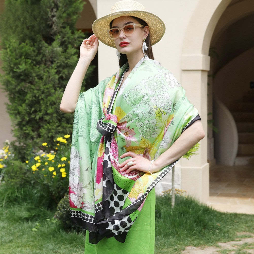 Anyyou 100% Mulberry Silk Emerald Green Long Scarf Luxury Brand Women Beach Shaw