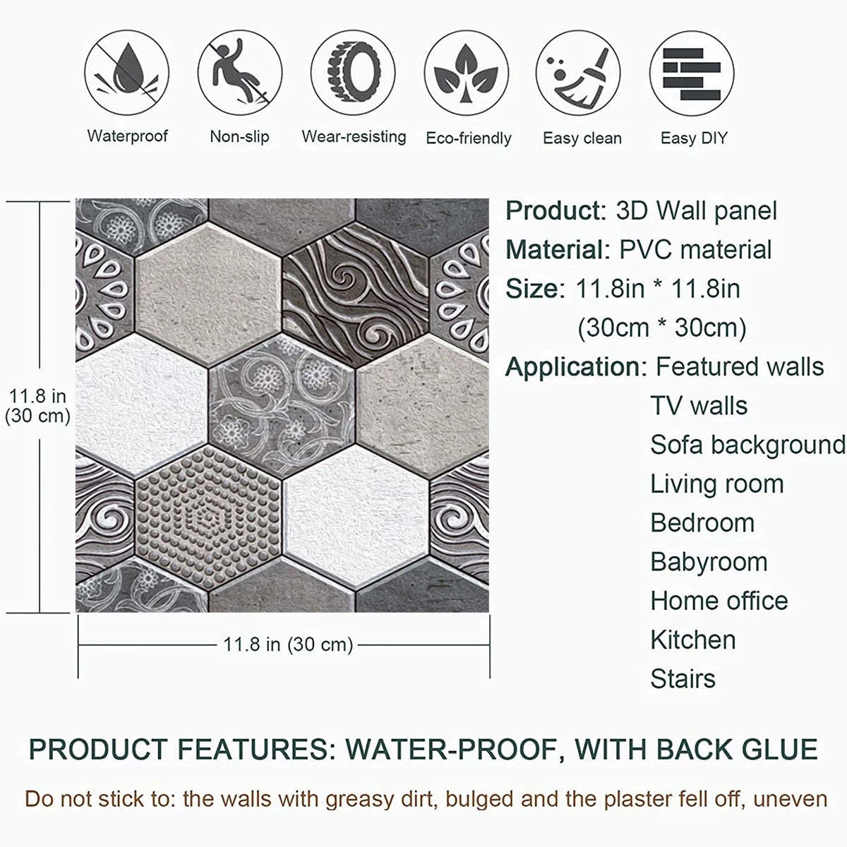 Anyhouz 10pcs Vinyl Tile Self Adhesive Planks Pattern Waterproof PVC Brick Wall