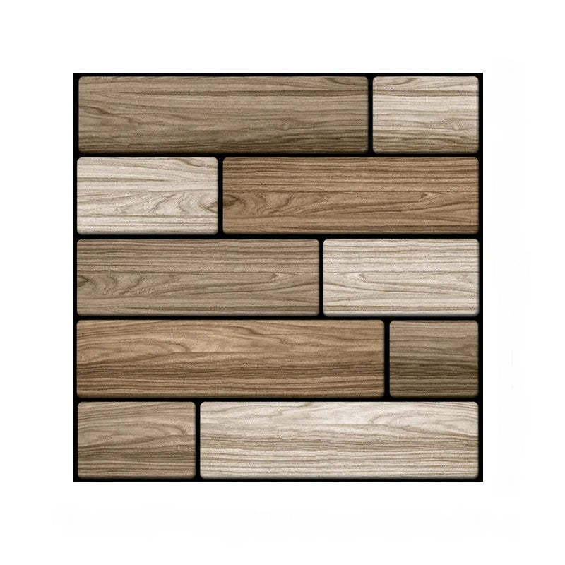 Anyhouz 10pcs Vinyl Tile Self Adhesive Brown Brick Wood Pattern Waterproof PVC B