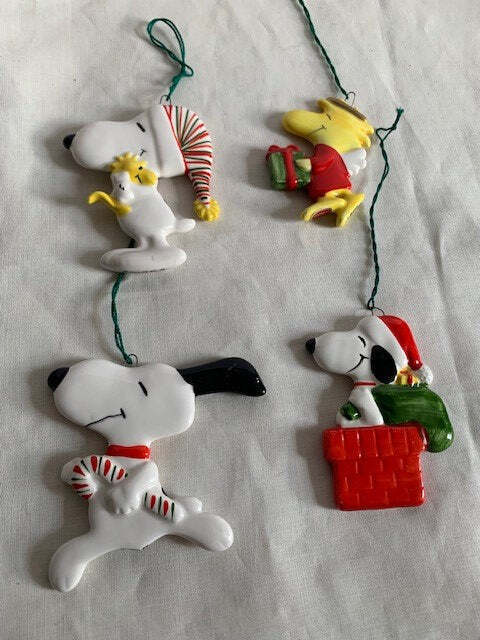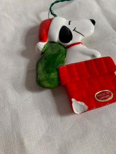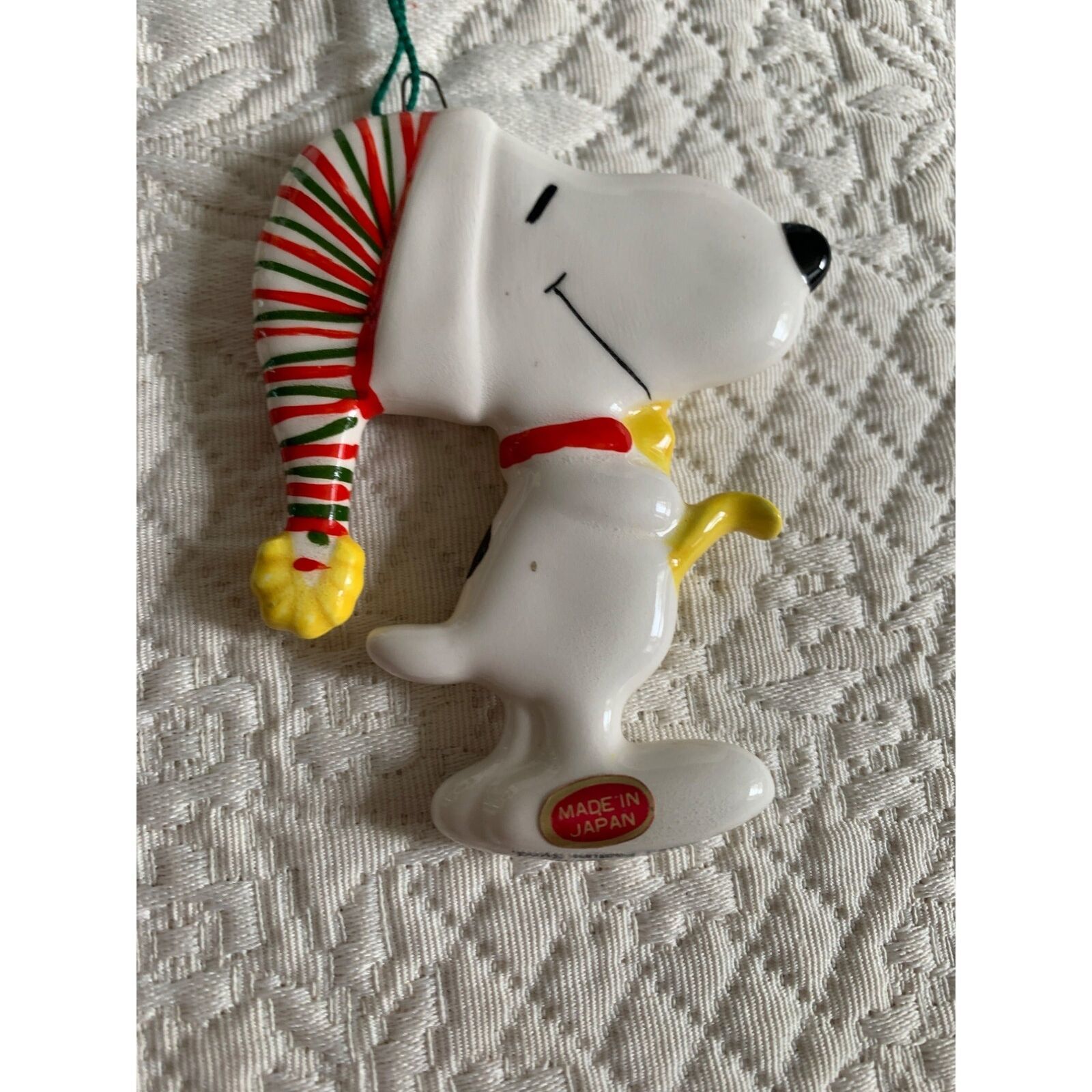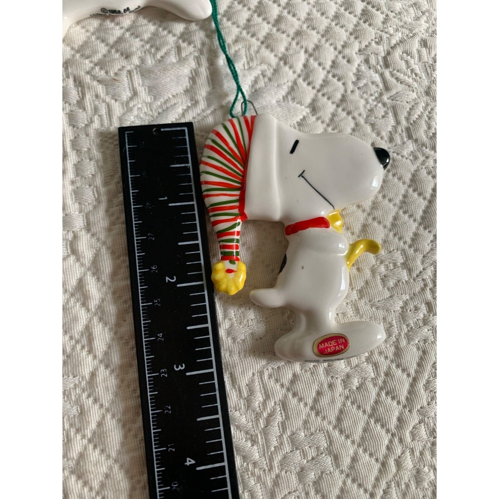 Adorable Vintage Peanuts Snoopy Woodstock Flat 2-Sided Ceramic Ornaments from Japan by United Features Sync. One ornament has a unique style with a chip on the backside. 3 inches tall and crafted from ceramic.? Vintage Peanuts ornaments? By United Features Sync? From Japan? 2-Sided flat ceramic? Snoopy and Woodstock design? One ornament with chip on the back? 3 inches tall