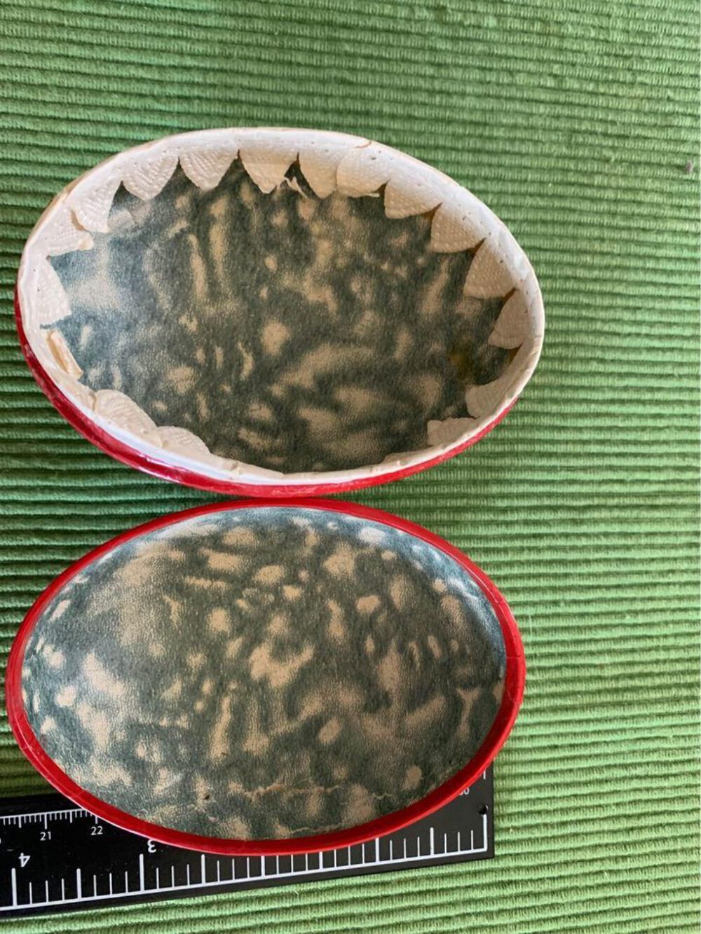 This authentic Vintage Paper Mache Egg is a stunning decorative piece. Its intricate detail and rich texture make it a beautiful addition to any room. Produced with a special mixture of paper pulp, this egg is guaranteed to last and add a unique antique charm to your home.