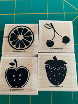 This Stampin Up Tart Tangy Rubber Stamps Set contains 4 unique designs with assorted sizes, perfect for crafting projects. Each stamp is embossed with precision detail made from unmounted rubber using fine laser technology. This set is ideal for card making, scrapbooking, and other paper crafting activities.