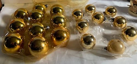 Vintage Christmas glass ball Ornaments Gold set includes 9 - 1.5" 10 - 2".