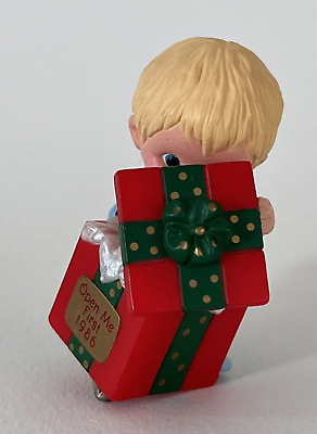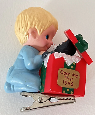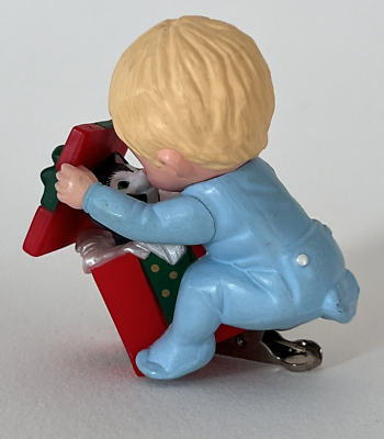 Hallmark Open Me First Child with Puppy in a Box Clip-On Ornament 1986