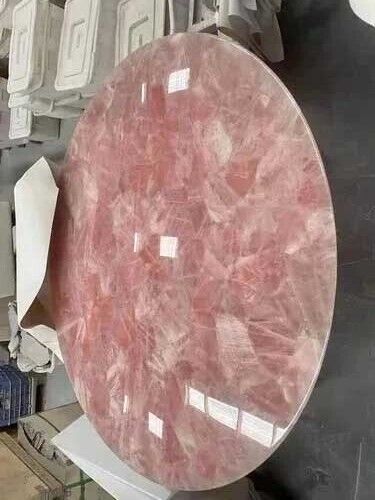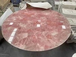 Rose Quartz Coffee Table Top Crystal Healing Gemstone Office Desk Cafeteria Deco