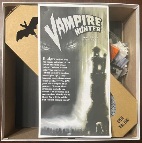 Get ready to transform into a thrilling vampire hunter with this complete board game from Milton Bradley. Released in 2002, "Vampire Hunter: The Game That Transforms Before Your Eyes" is a spine-chilling board game that will keep you on the edge of your seat. With a recommended age range of 9 and up, this game is suitable for boys and girls aged 8 to 17 years old.