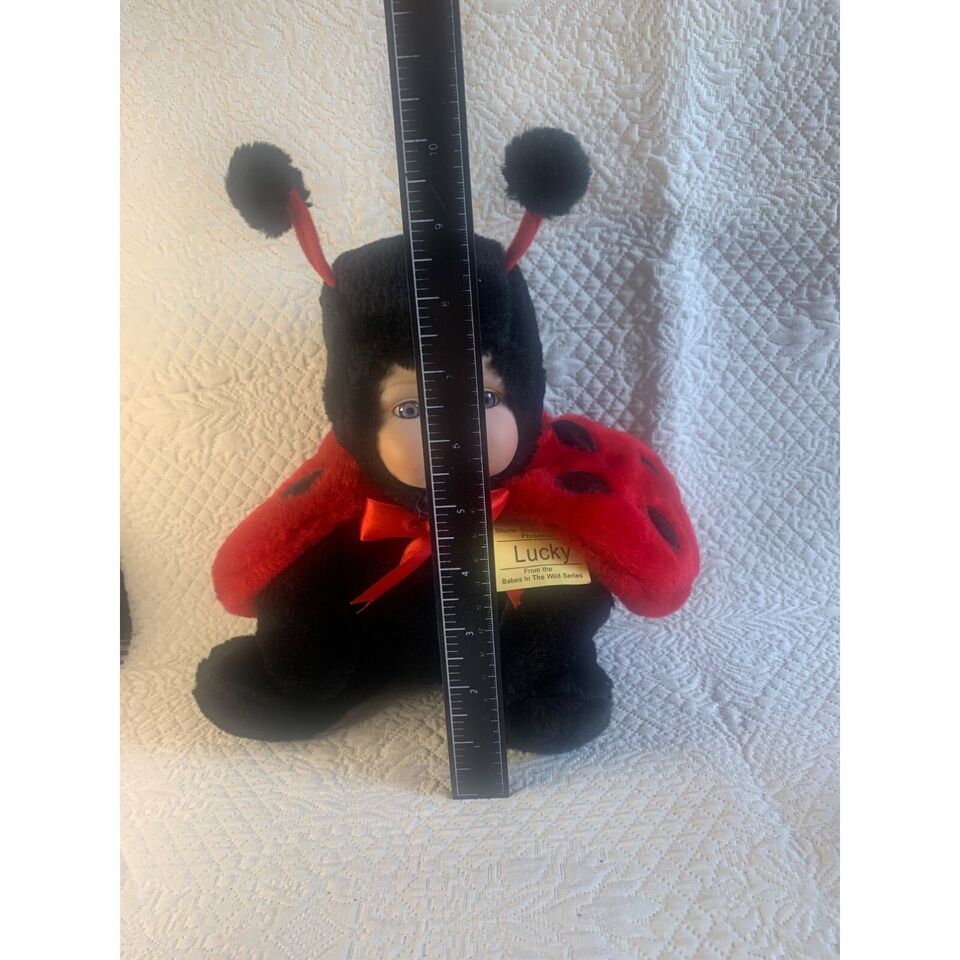 Show Stoppers Babies in the Wild Lucky Ladybug is a captivating 11-inch tall soft toy. Made of premium quality cotton, this red lucky ladybug comes with an adorable tag. Ideal for kids and collectors alike.