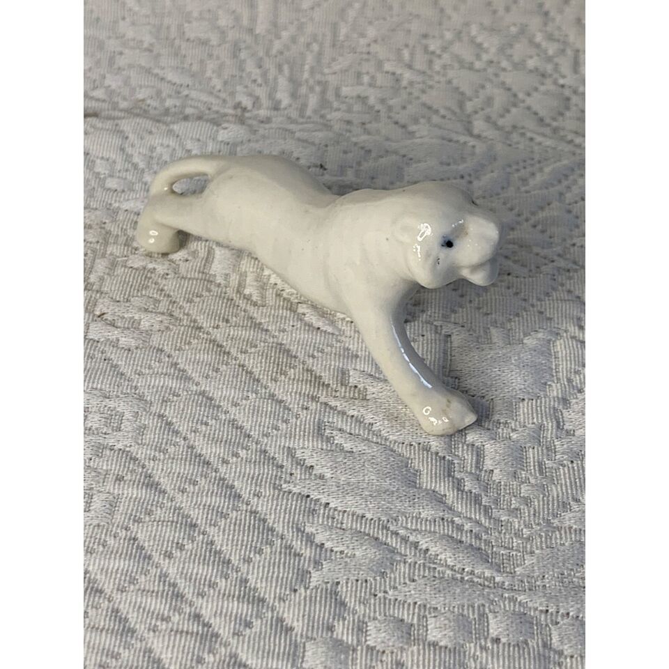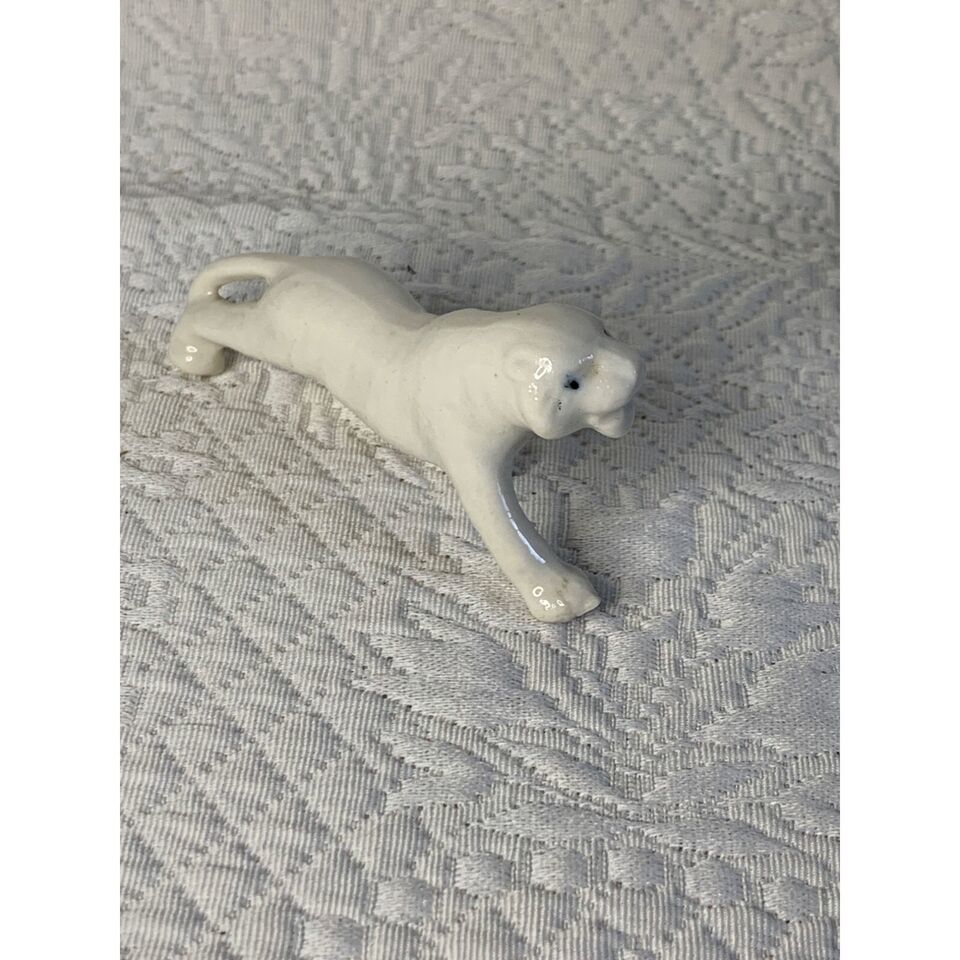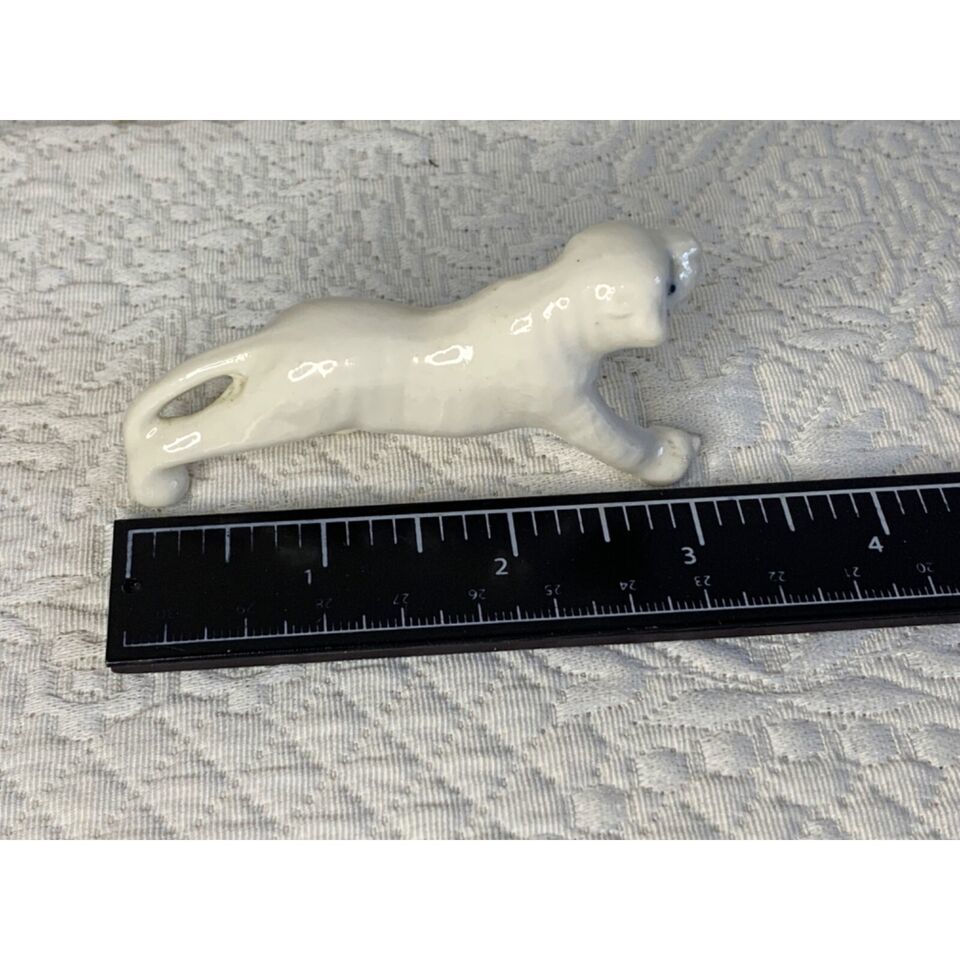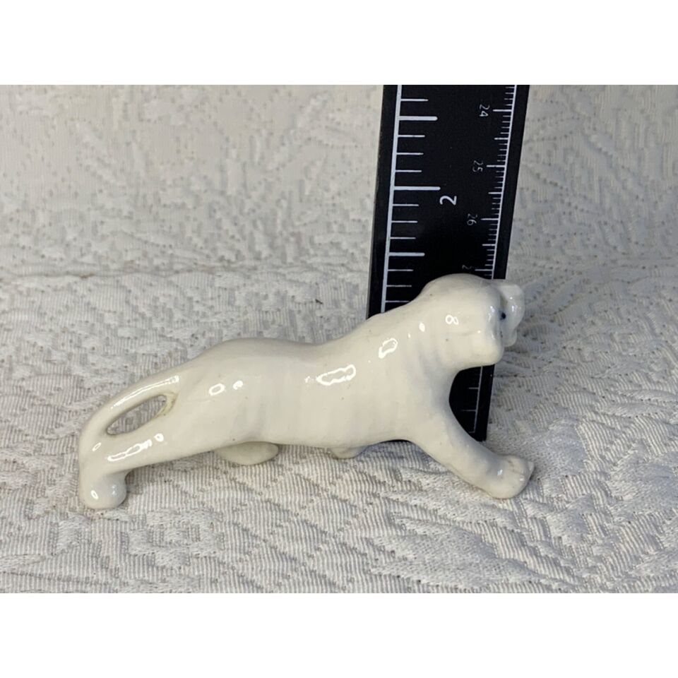 This White Tiger porcelain vintage figure is an elegant addition to any collection. Standing 1.5 inches tall and 3.5 inches long, the pristine white figurine is free from any chips or cracks.
