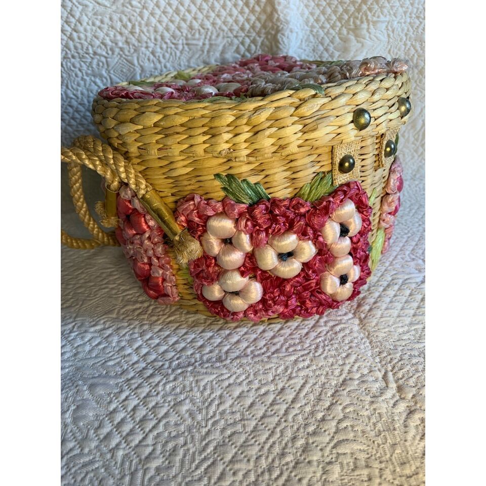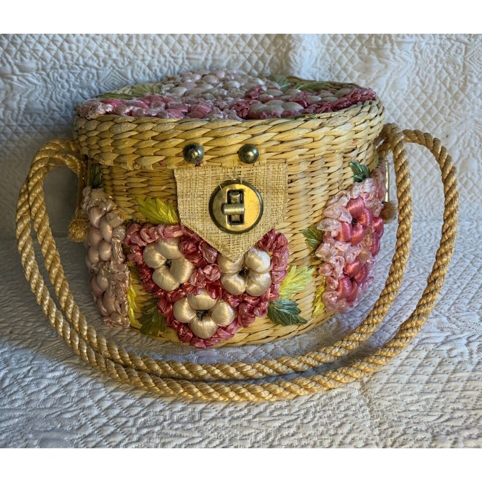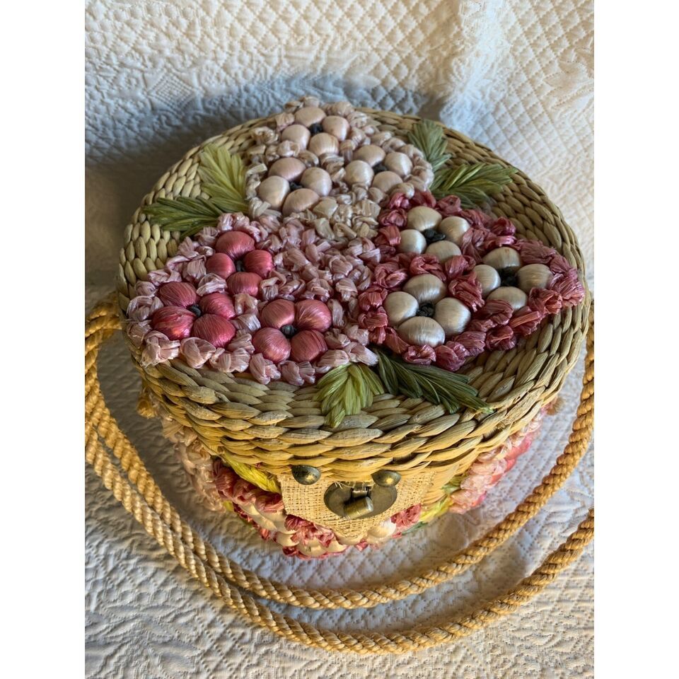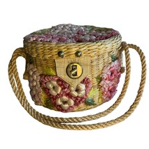 Vintage 1950s 60s Woven Straw Basket Box Purse Handbag Raffia Strawberry added to cart.
