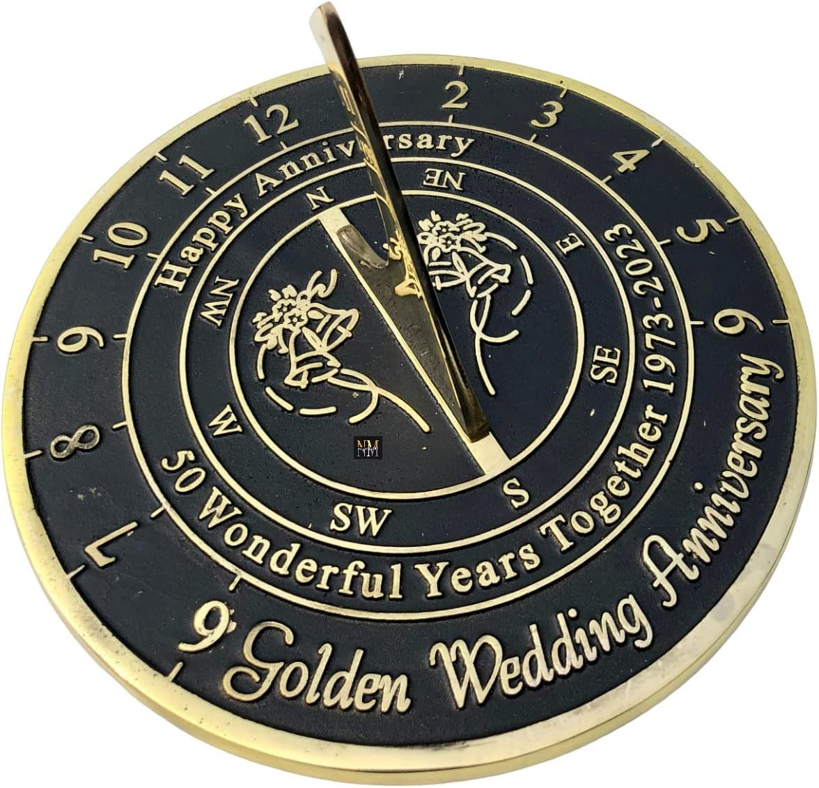 NauticalMart 50th Golden Wedding Anniversary Sundial Gift Heavy Duty Brass Home Decor Or Garden Present Idea for Parents, Grandparents, Friends, Couples 50 Years Marriage (10 Inches 2023)