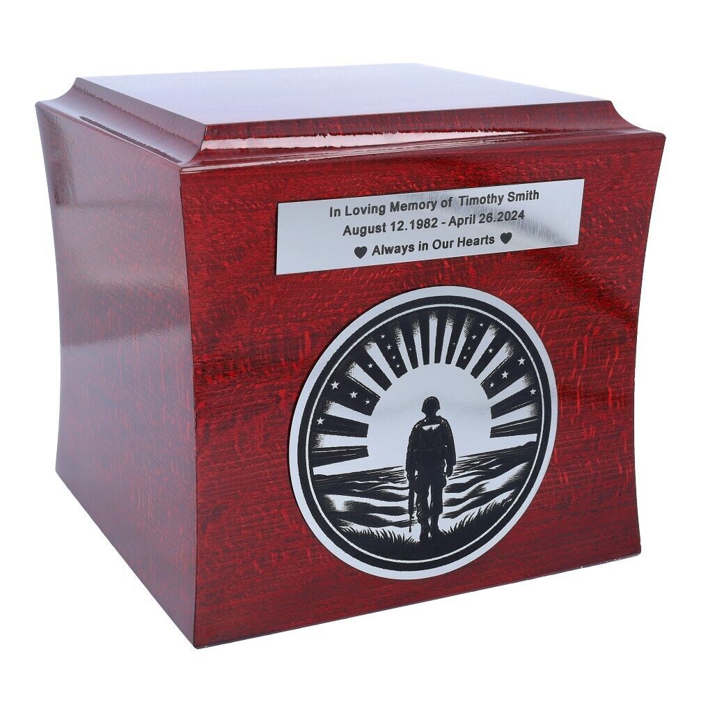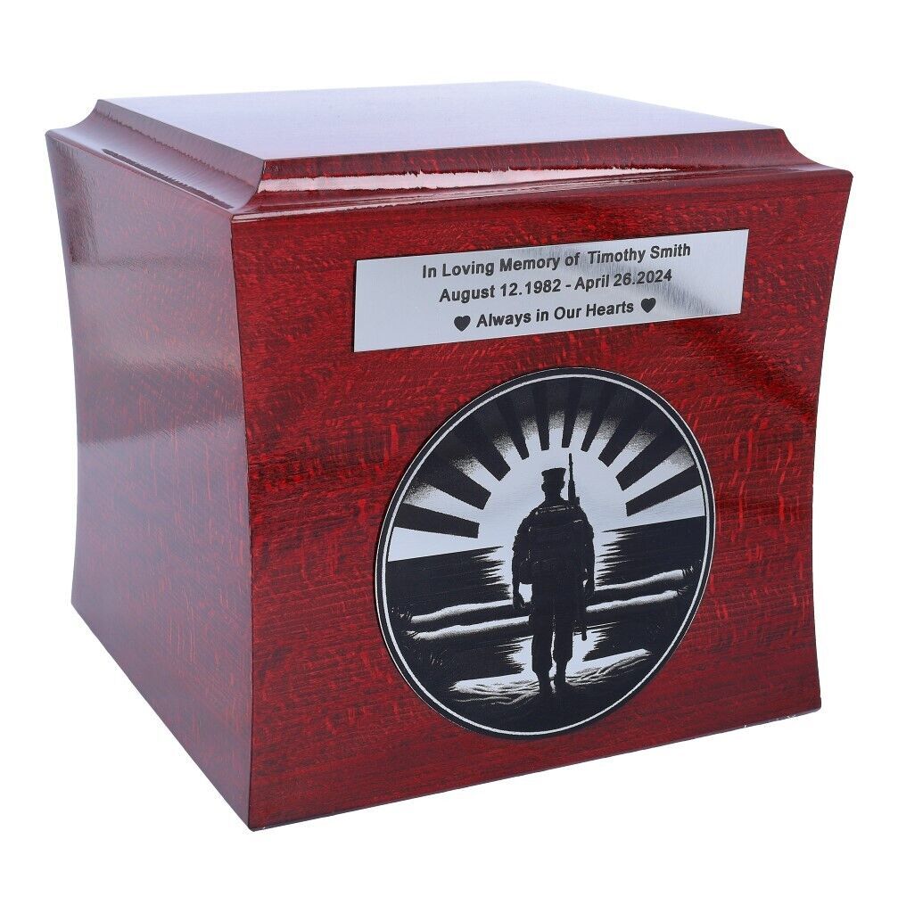 Honor the bravery and service of your loved one with our distinguished Soldier Urn. Crafted from high-quality materials, this urn features an exquisitely engraved soldier, symbolizing courage, dedication, and sacrifice. The intricate detailing captures the essence of a true hero, making it a fitting tribute for those who served in the armed forces. With a sleek, durable finish, this urn ensures that the memory of your cherished one is preserved with dignity and respect. Ideal for military personnel and veterans. The Soldier Urn is a heartfelt way to commemorate a life of valor and honor.
