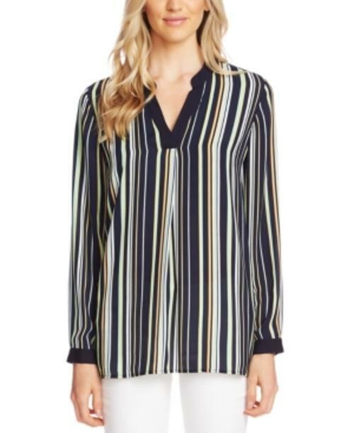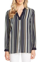 MSRP $89 Women's Vince Camuto Waterlake Stripe Split Neck Top Navy Size XS