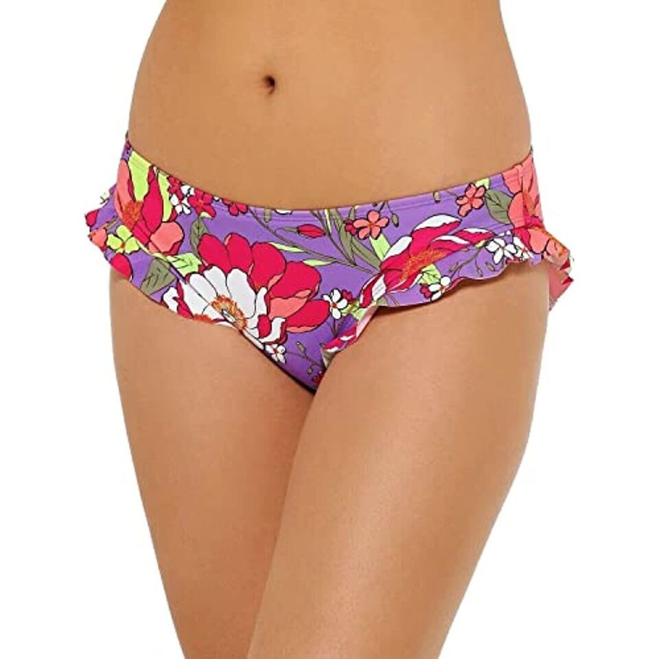 Hula Honey Swimwear Bottom Junior Floral Print Ruffle Purple XL NWOT