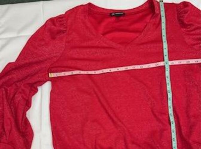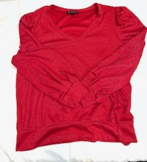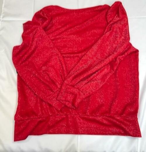 MSRP $60 International Concepts Shimmering V-Neck Blouson-Sleeve Red Size XL