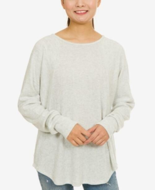 $34 Hippie Rose Juniors' Cozy Lattice-Back Dolman-Sleeve Top Gray Size Medium