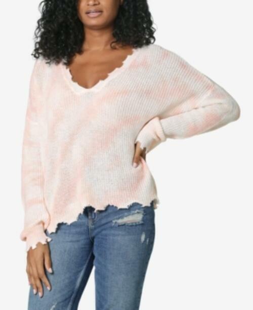 MSRP $44 Ultra Flirt Juniors' Destructed Tie-Dyed Sweater Pink Size XS NWOT