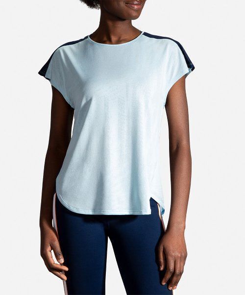 MSRP $50 Brooks Navy & Glacier Jaquard Keyhole Spirit Tee Size XS NWOT