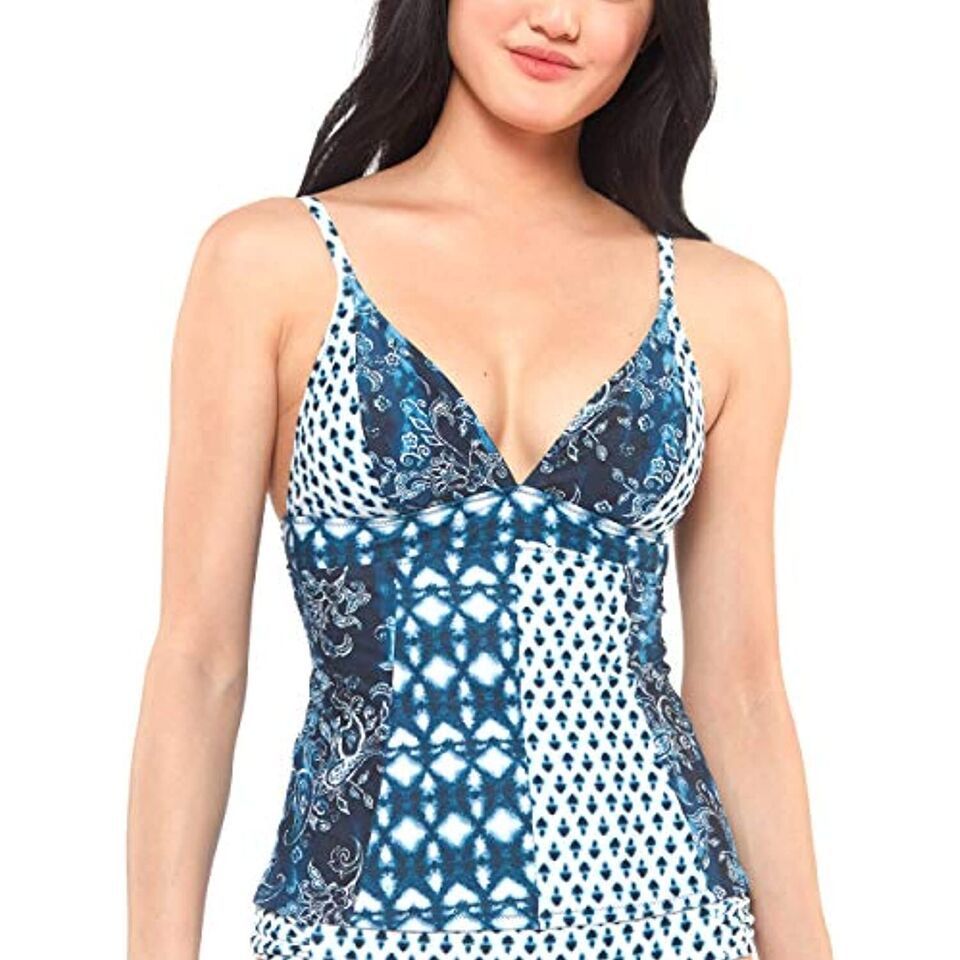$68 Jessica Simpson Standard Mix Match Print Bikini Separates Navy Size Medium
