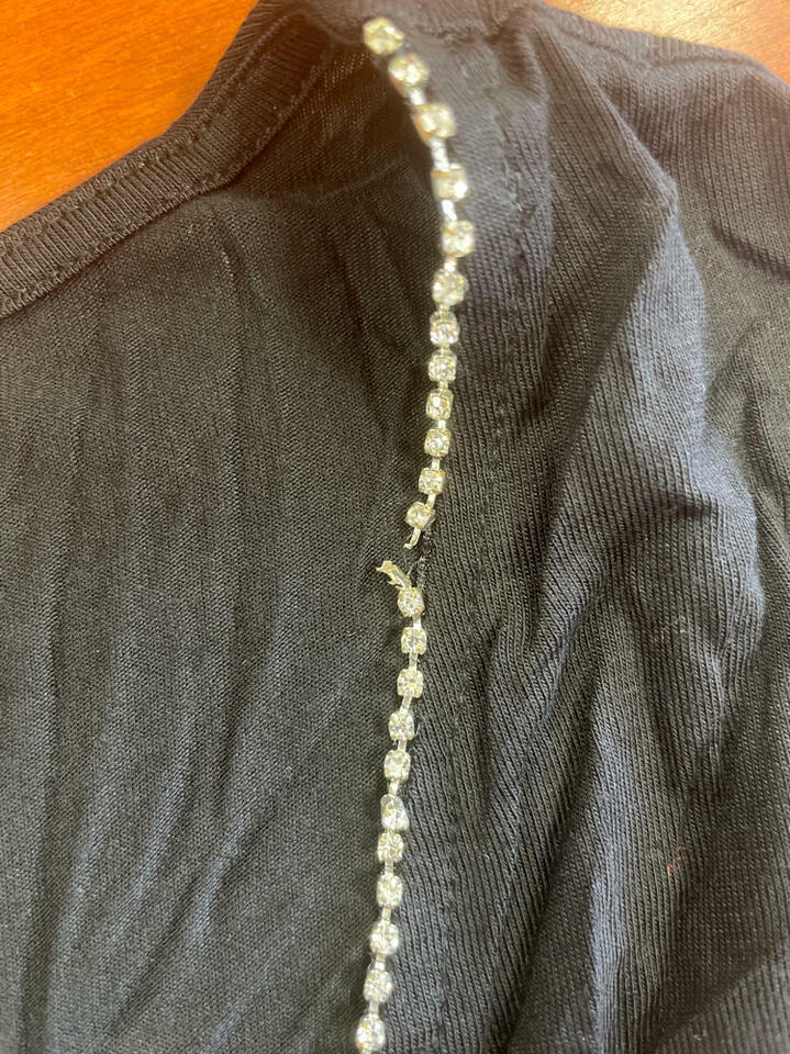 MSRP $60 Thalia Sodi Cinch-Front Rhinestone Top Black Size Large (TORN)