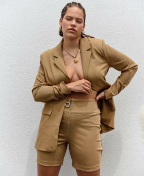 An exposed zipper and slim fit amplify the edgy nature of these Danielle Bernstein biker shorts. Danielle Bernstein, founder of world-renowned fashion blog WeWoreWhat, introduces a new line of clothing using her namesake. The new brand is size inclusive and affordable, with all pieces under $100. Danielle grew up shopping at Macy's on Long Island, Ny, and her new line is a nod to her childhood.
