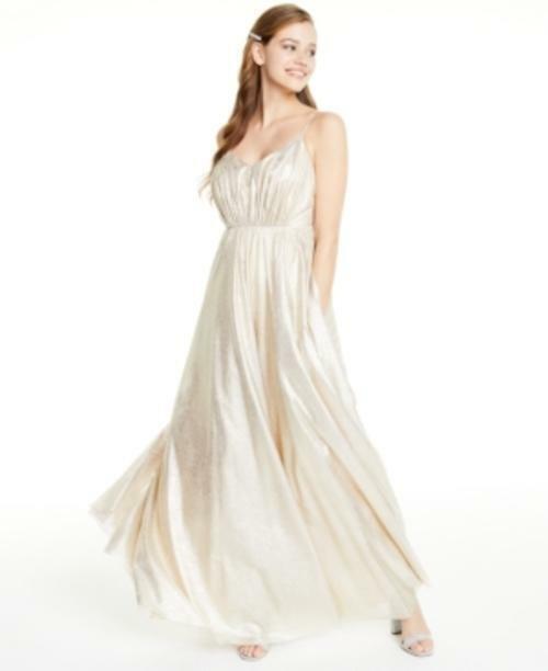 MSRP $139 City Studios Juniors' Metallic Foil Rhinestone-Waist Gown, Size 7