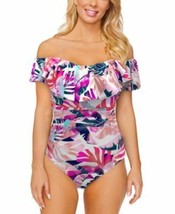 MSRP $65 Island Escape Womens La Flor One-Piece Swimsuit White Size 6