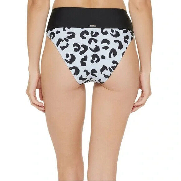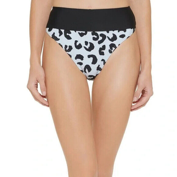 MSRP $58 Dkny Printed High-Waist Bikini Bottom Womens Swimsuit Blue Size Small