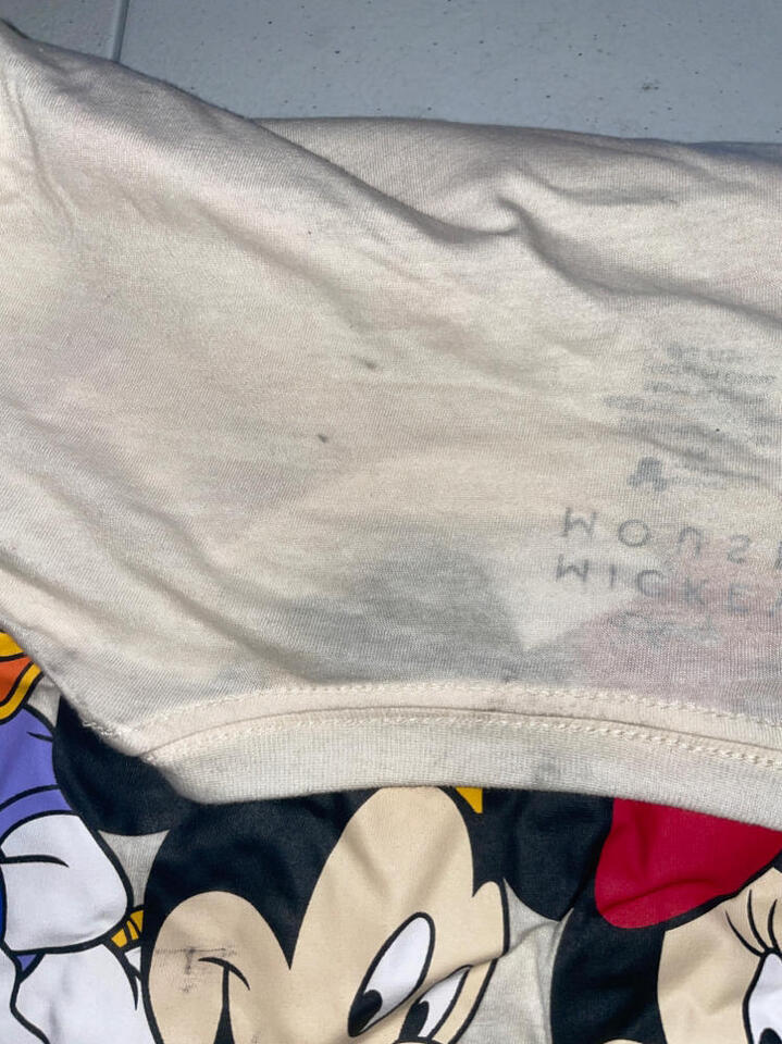 MSRP $24 Disney Juniors' Mickey & Friends Printed T-Shirt Beige Size XS (STAIN)