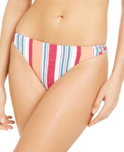 MSRP $45 Roxy Juniors' Striped Strappy Bikini Bottoms Swimsuit Pink Size Medium