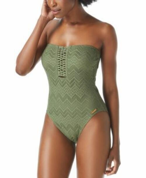 MSRP $134 Vince Camuto Bandeau One-Piece Swim Safari Green Size 6 (DEFECT)