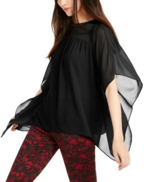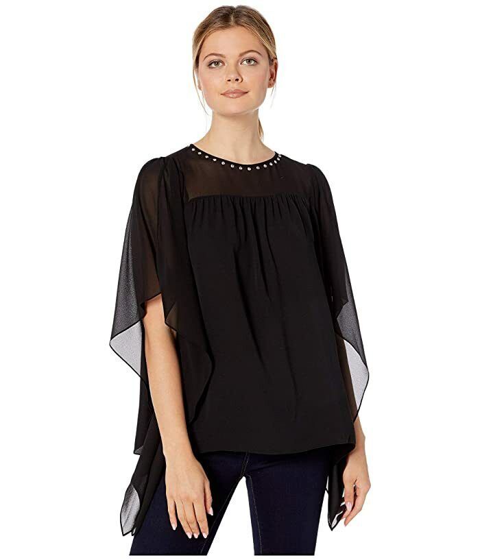 MSRP $98 Michael Kors Embellished Sheer Bell Sleeve Top Black Size XS