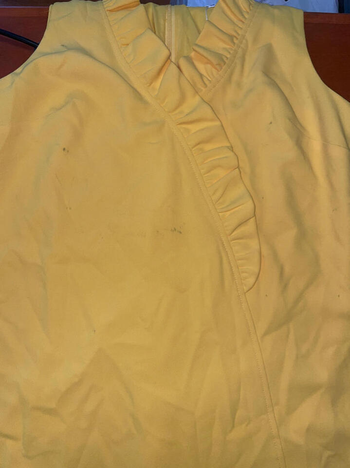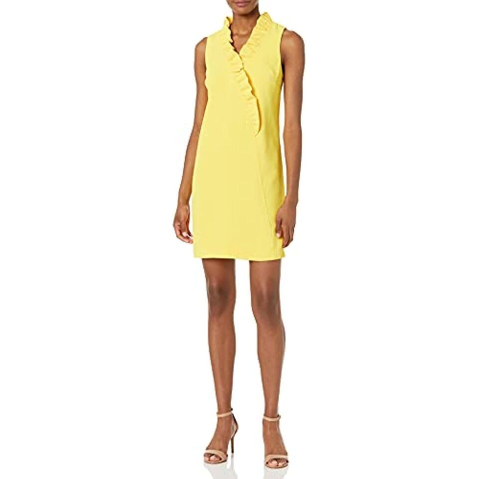MSRP $298 Trina Turk Women's Ruffled Neckline Sheath Dress Size Medium (STAINED)
