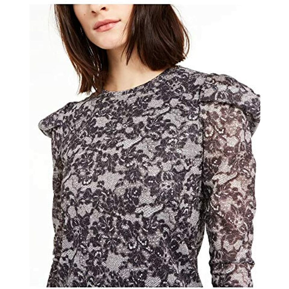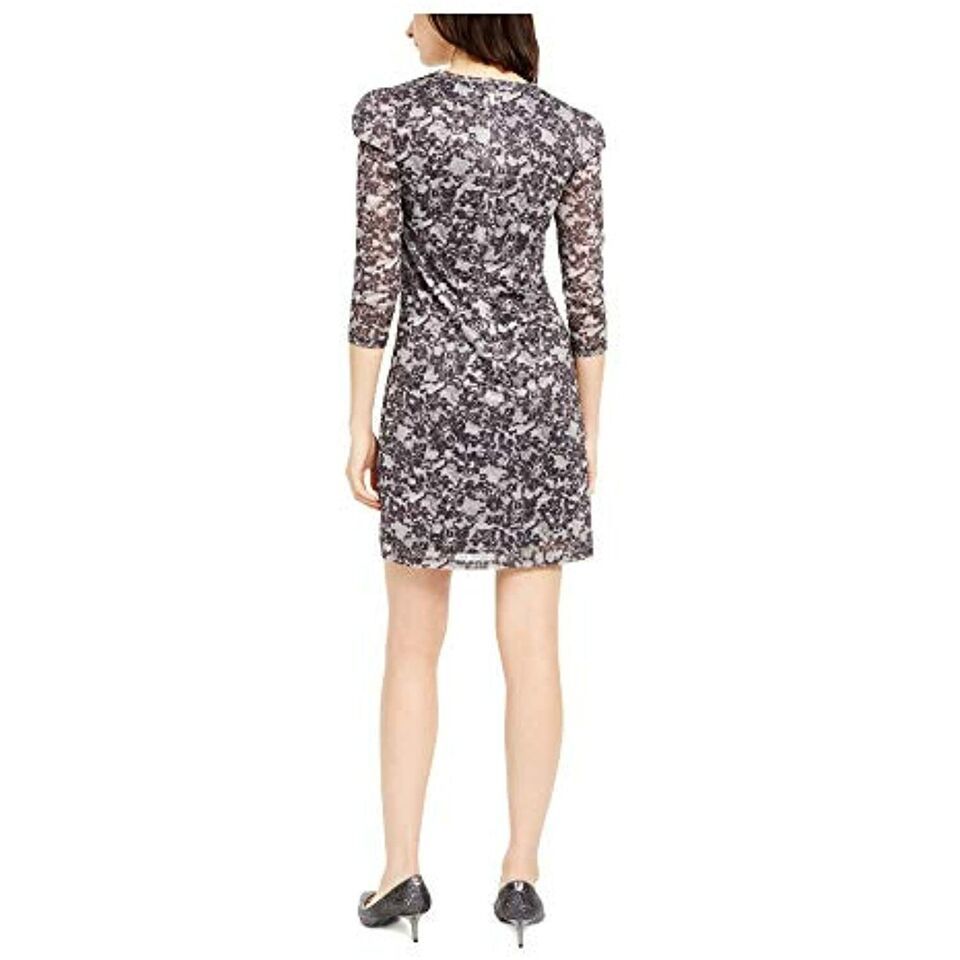 $165 Michael Kors Lace Print Quarter Puff Sleeve Sparkle Sheath Dress Gray Large