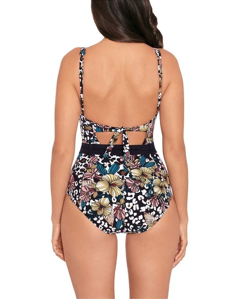Your swim fantasies will come true lickety split. Get the light shaping and support you need with this one piece from Skinny Dippers by the makers of Miraclesuit. The adjustable straps let you customize the fit, while adjustable tie back offers even more customization you're sure to appreciate. Turn every head as you walk down the beach in this eye-catching print. The self-belt naturally highlights the narrowest part of your figure. Built in soft cups provide gentle contouring that is so flattering and comfortable. Put this unique option in your swim bag and never look back.
