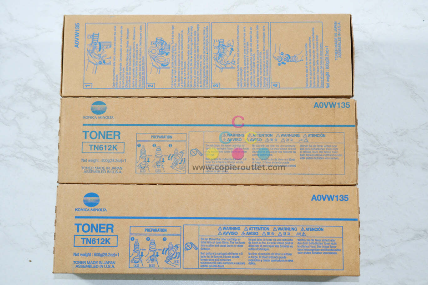 3 OEM Konica Bizhub C5501, C6501, C6501P Black Toner Cartridges TN612K, A0VW135