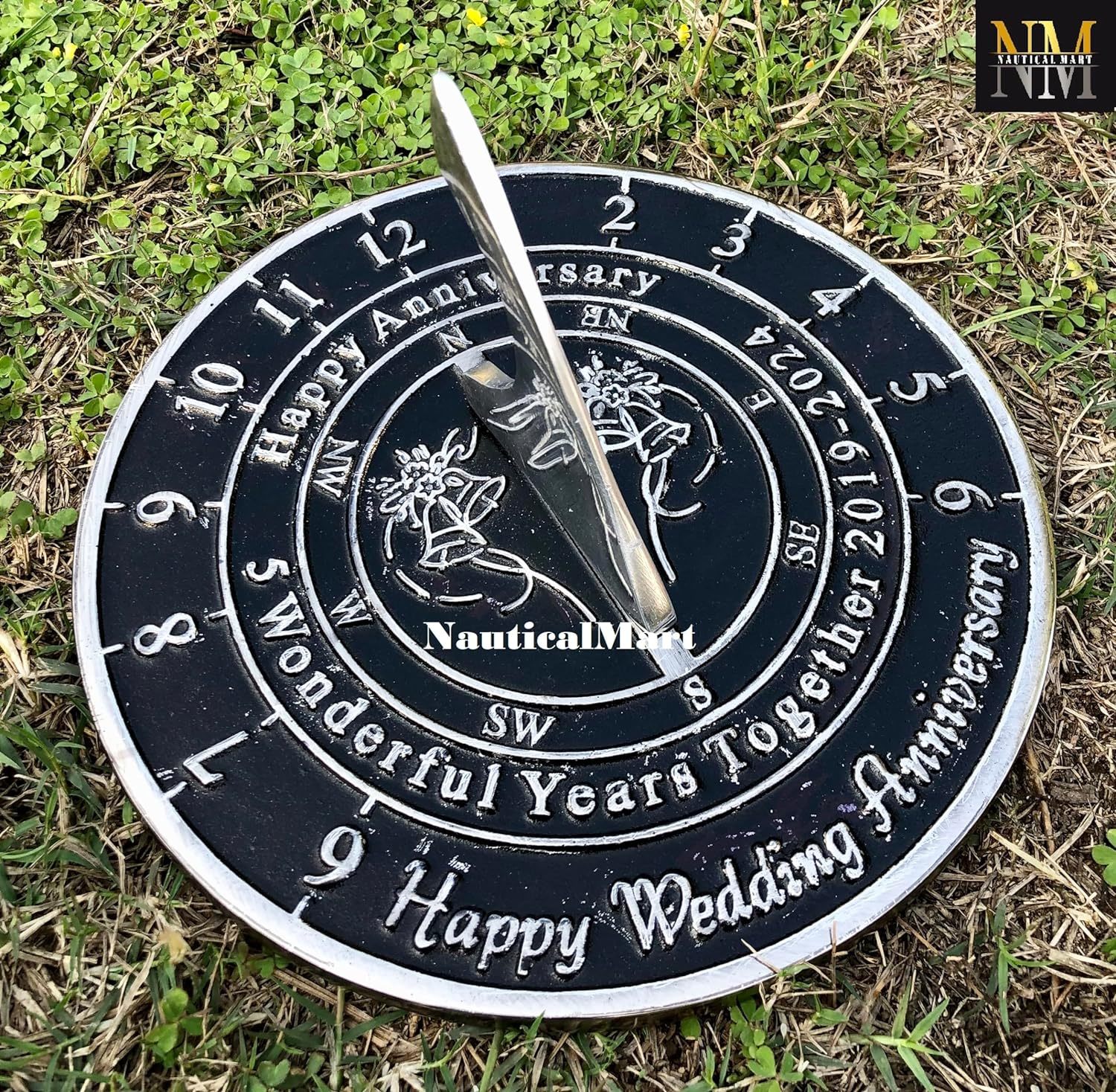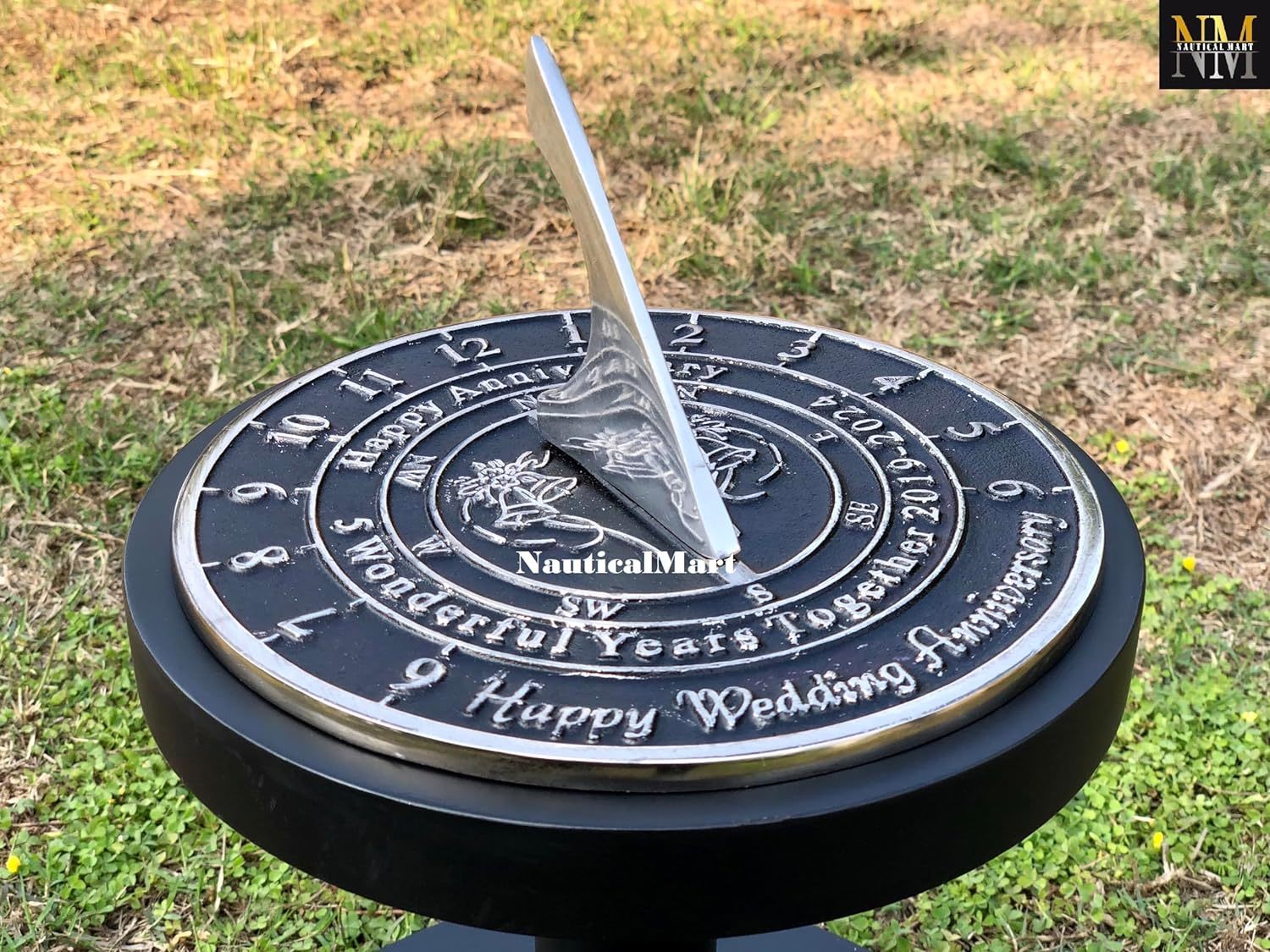 NauticalMart 5th Wood Anniversary Unique Marriage Present for Parents, Grandparents, Friends, Husband or Wife, Couples, Him Her Wedding Anniversary Sundial Gift 2024 (5th Anniversary)