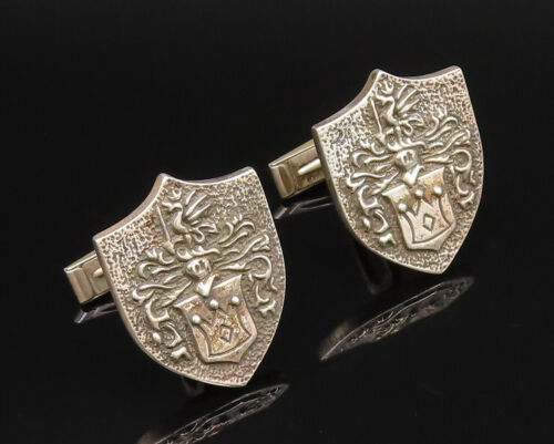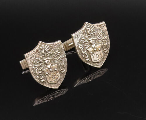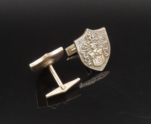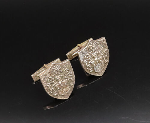 925 Sterling Silver - Vintage Carved Royal Emblem Cuff Links - TR3425
