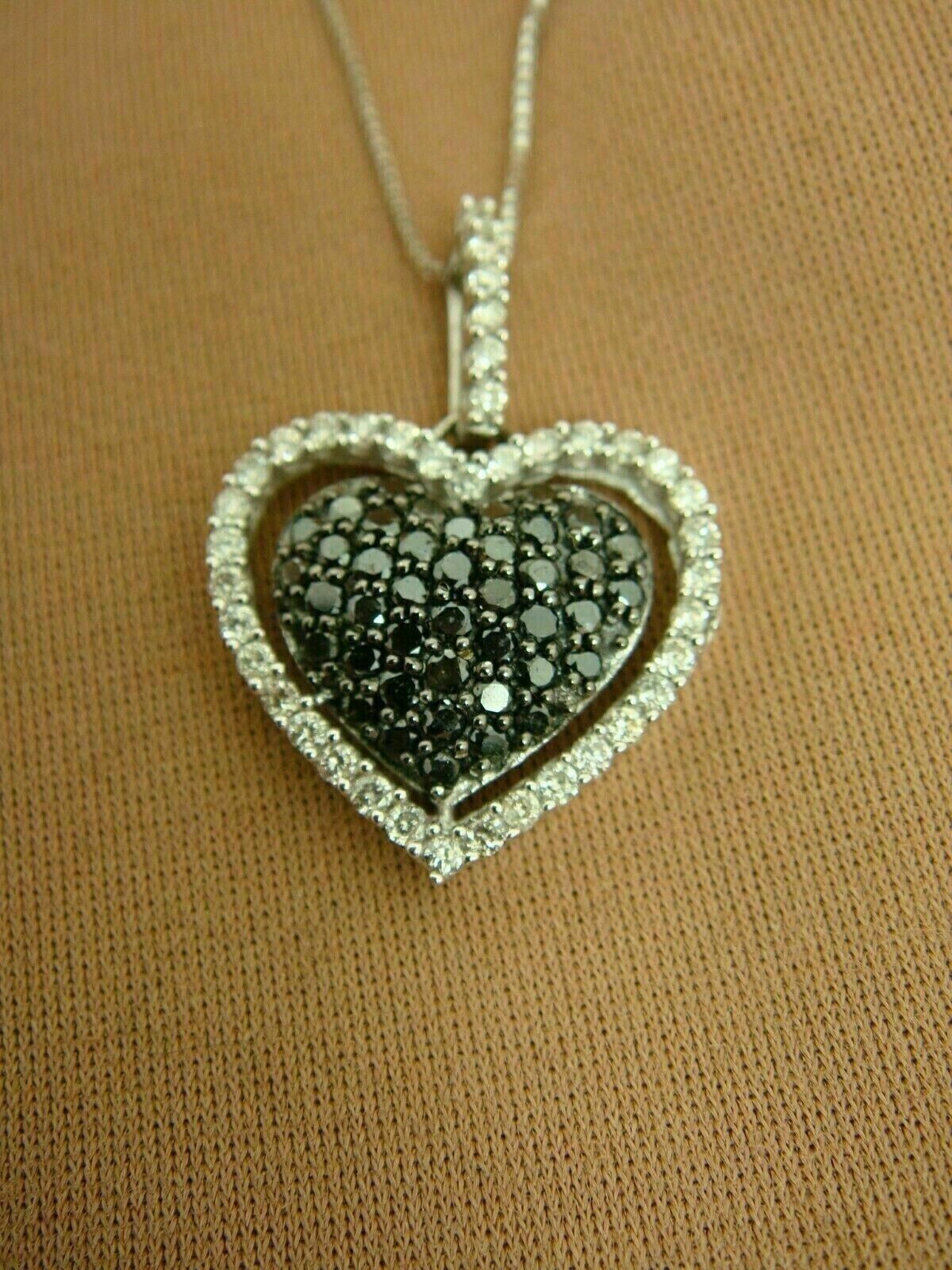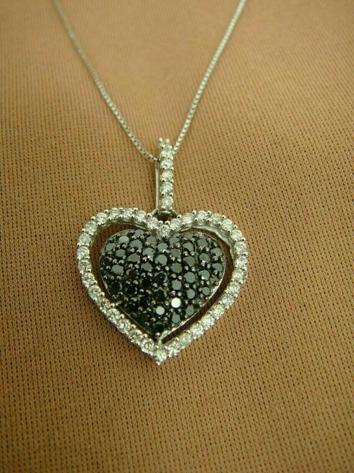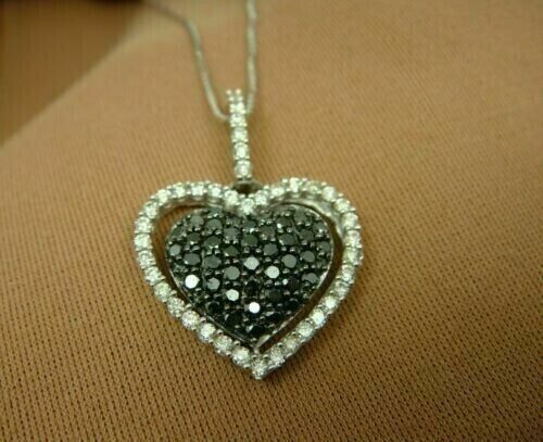2Ct Round Cut Lab Created Black & White Diamond Pendant 14K White Gold Finish