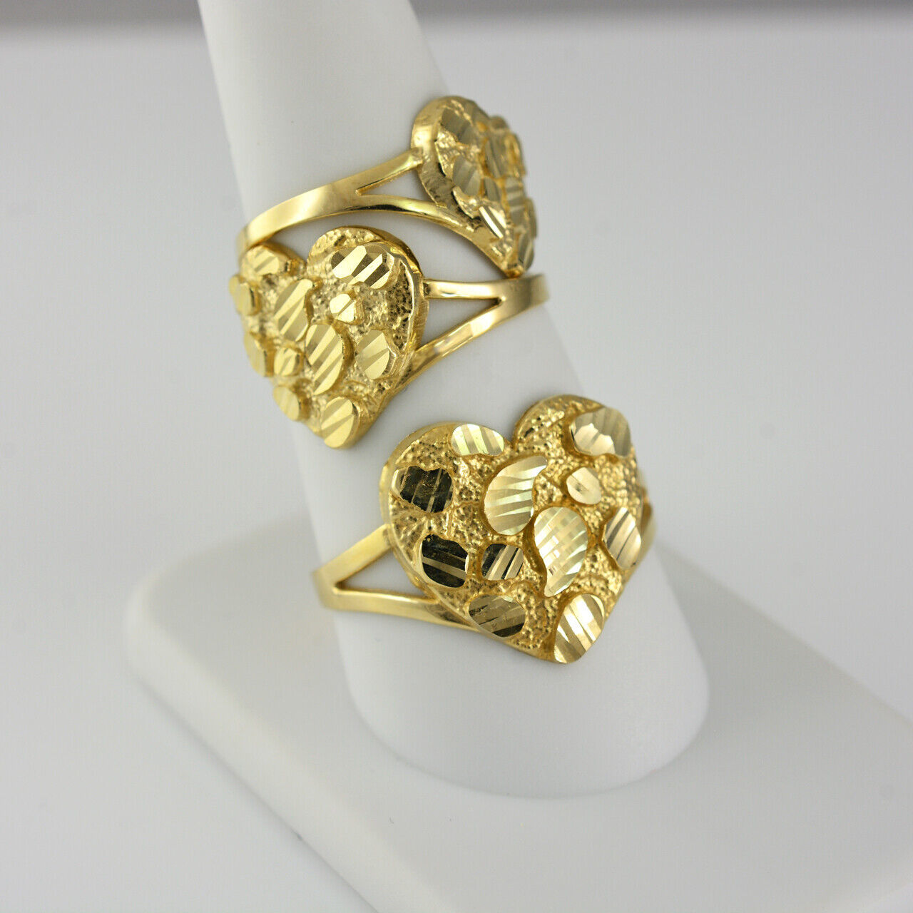10K Yellow Gold Nugget Sparkle-cut Large Heart Ring
