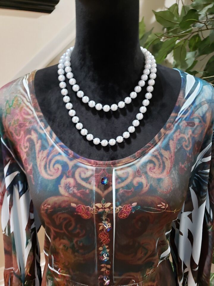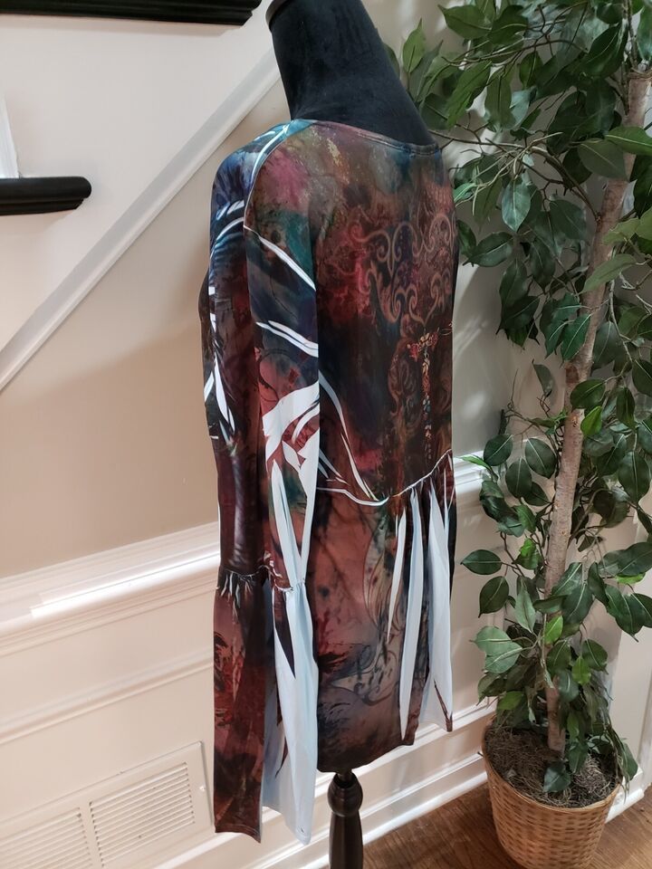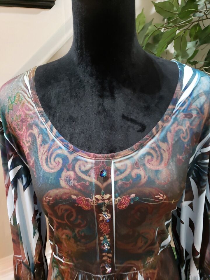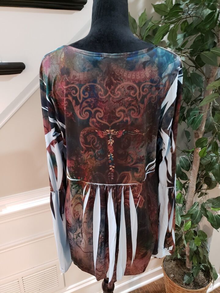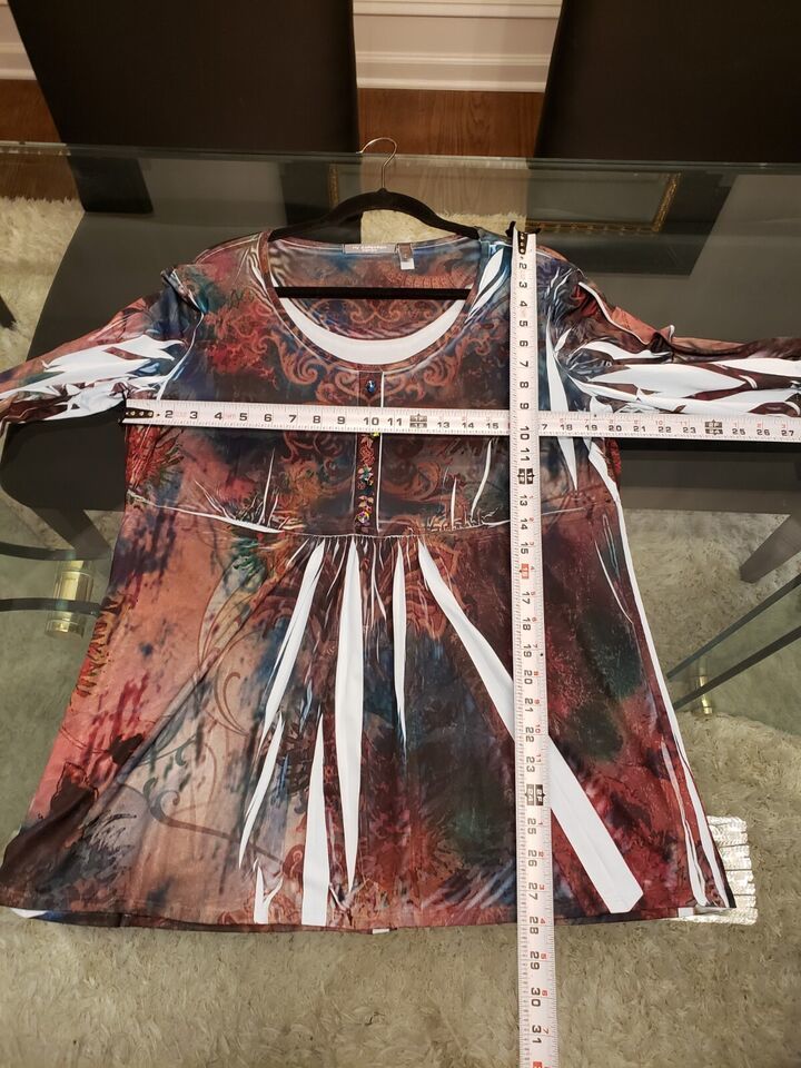 NY Collection Women's Multicolor Polyester Scoop Neck Long Sleeve Top Blouse 1X.