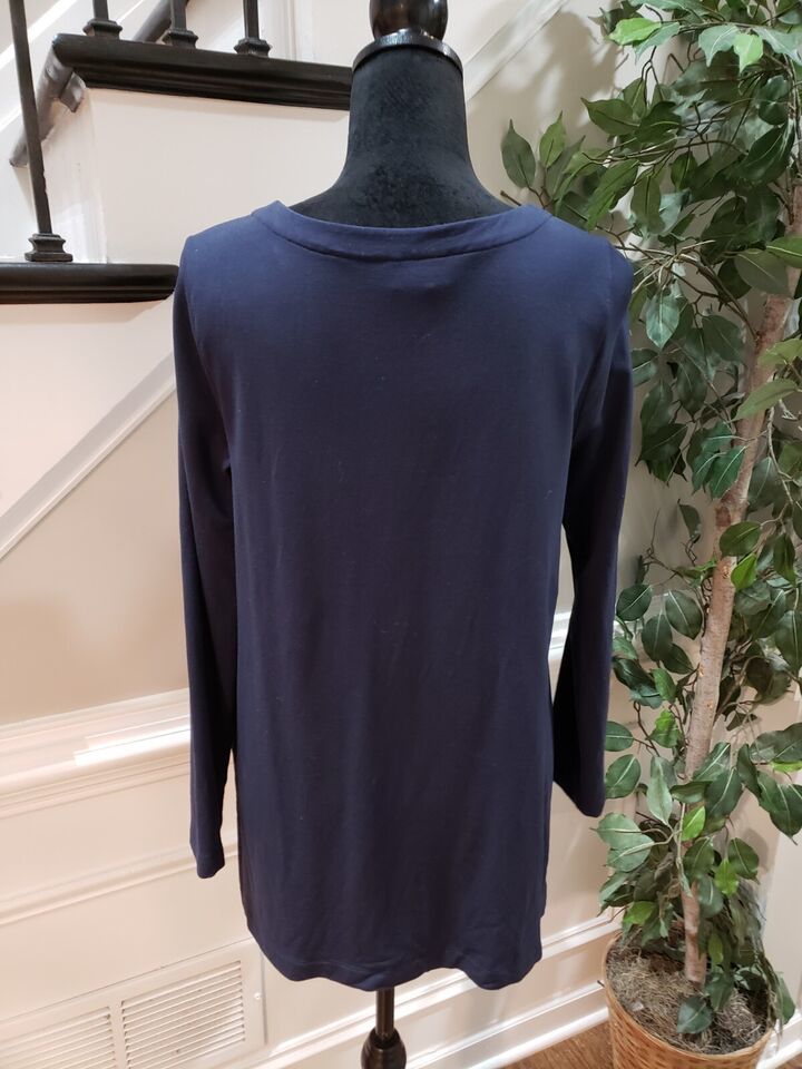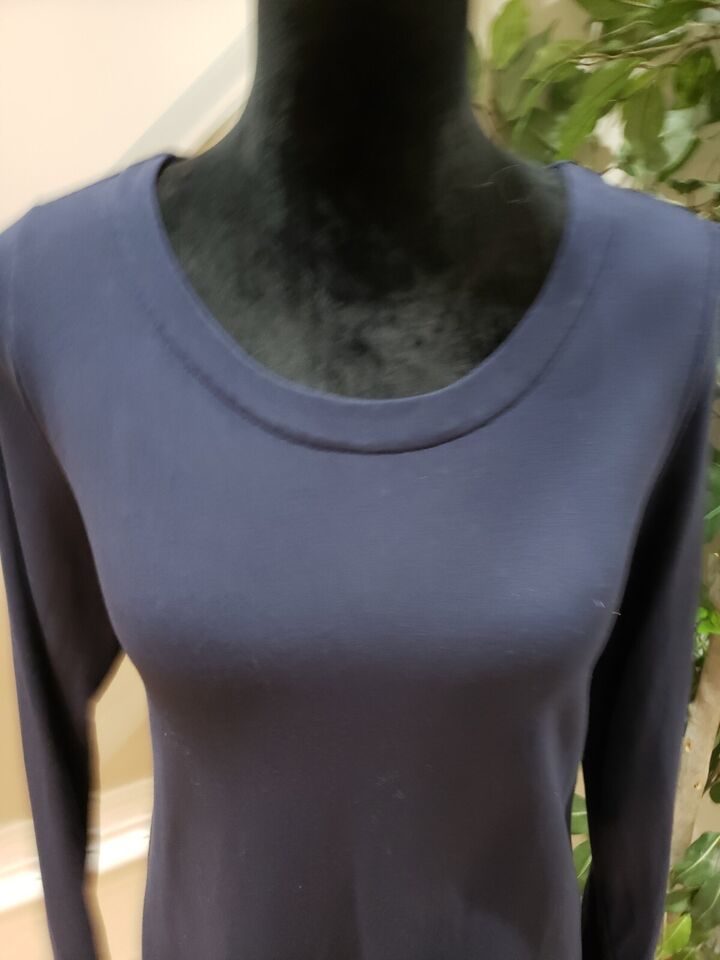 J. Jill Women's Blue Solid Rayon Round Neck Long Sleeve Casual Top Blouse Small.