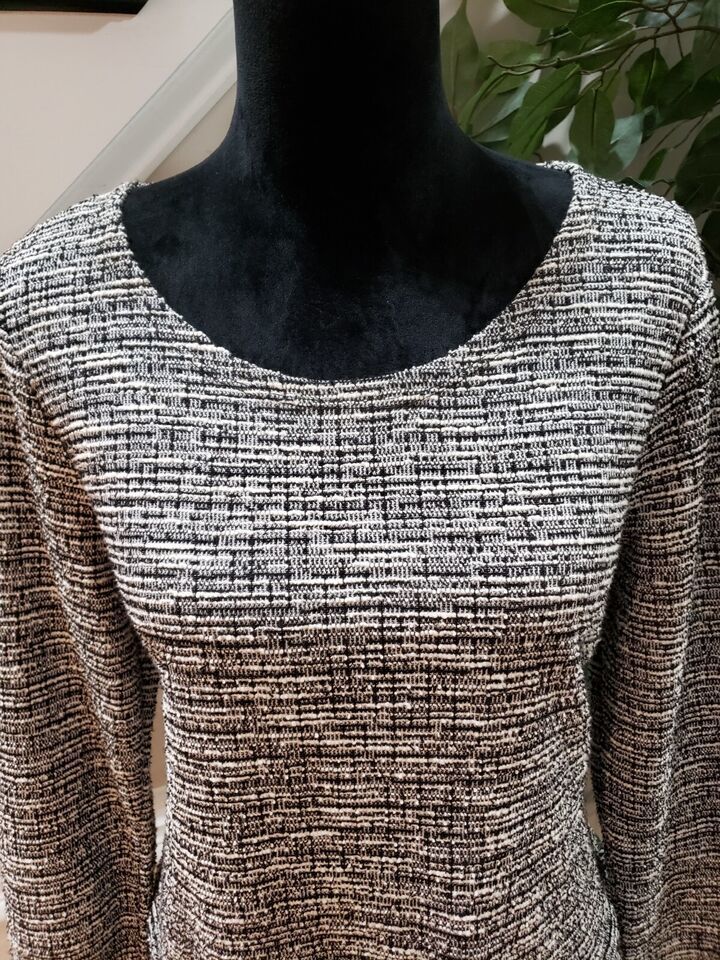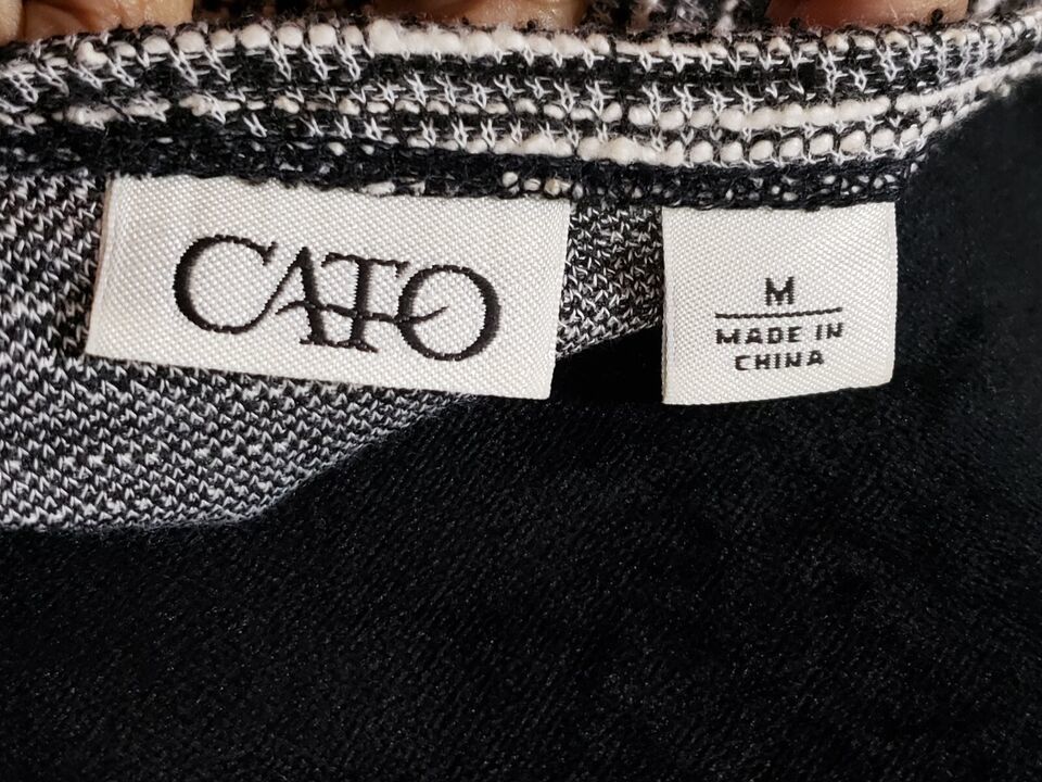 Cato Women's Black White Polyester Round Neck Long Sleeve Top Blouse Medium.