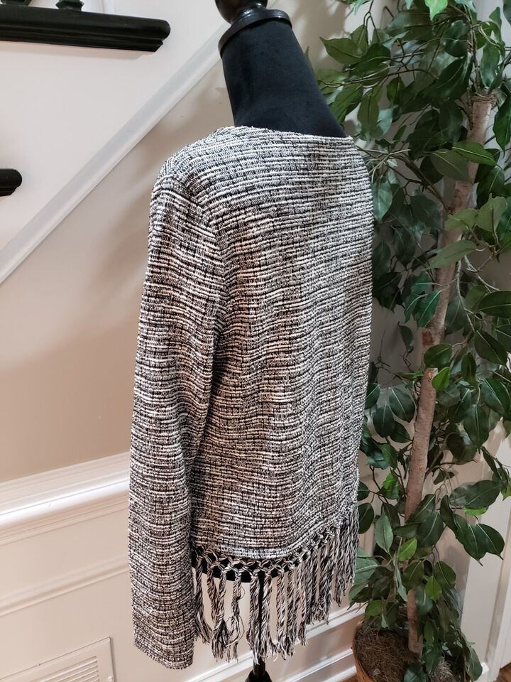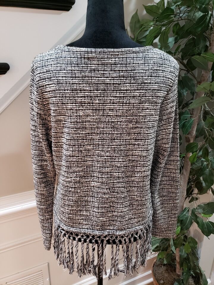 Cato Women's Black & White Polyester Round Neck Long Sleeve Top Blouse Medium