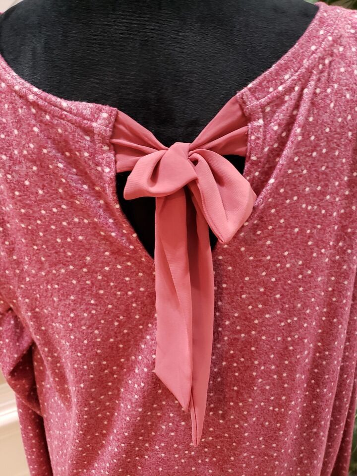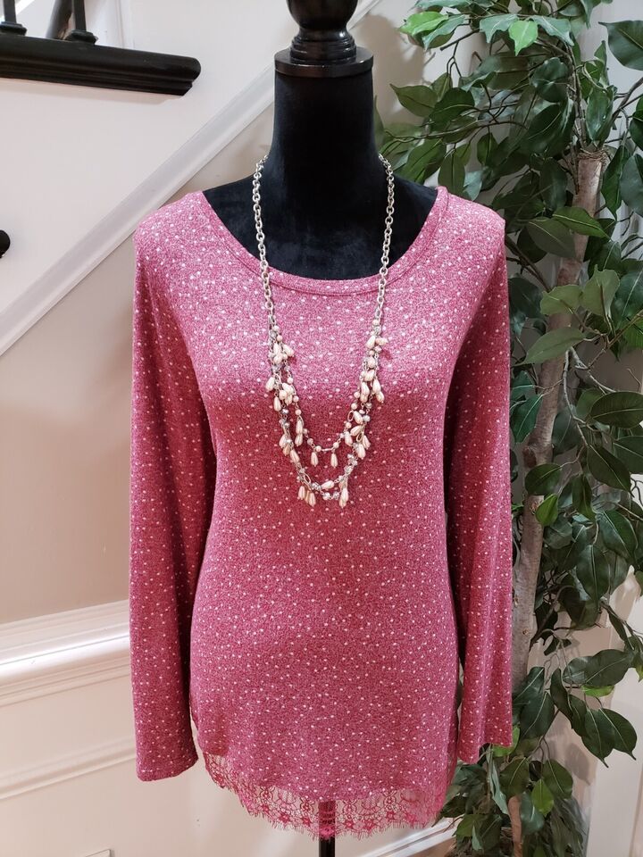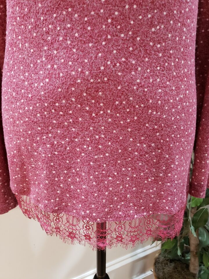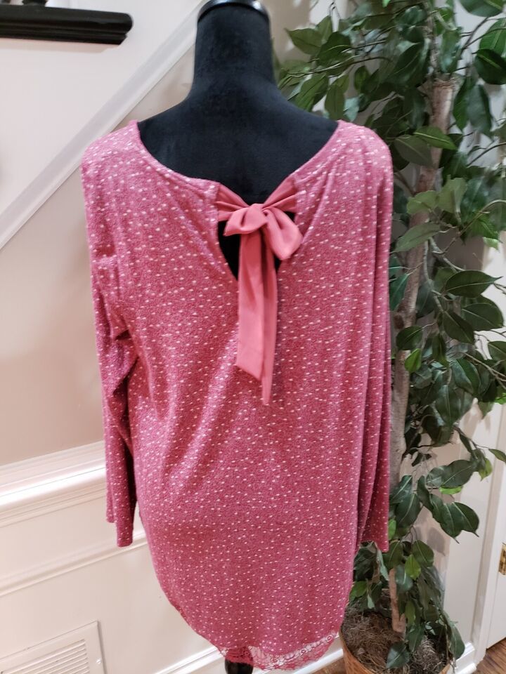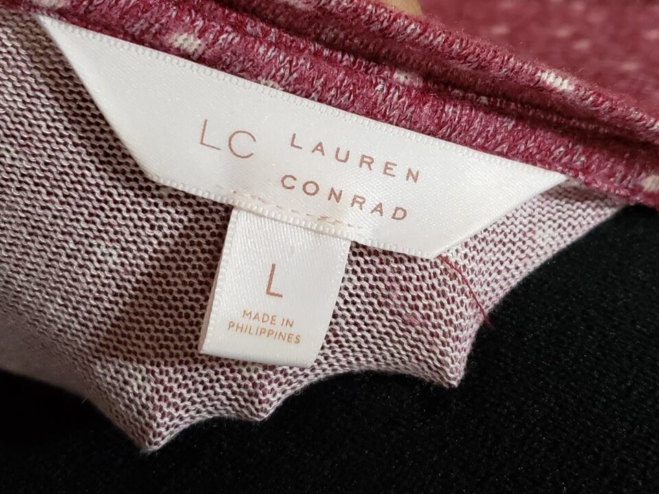 Lauren Conrad Women's Pink Polka Dot Rayon Round Neck Long Sleeve Top Blouse L