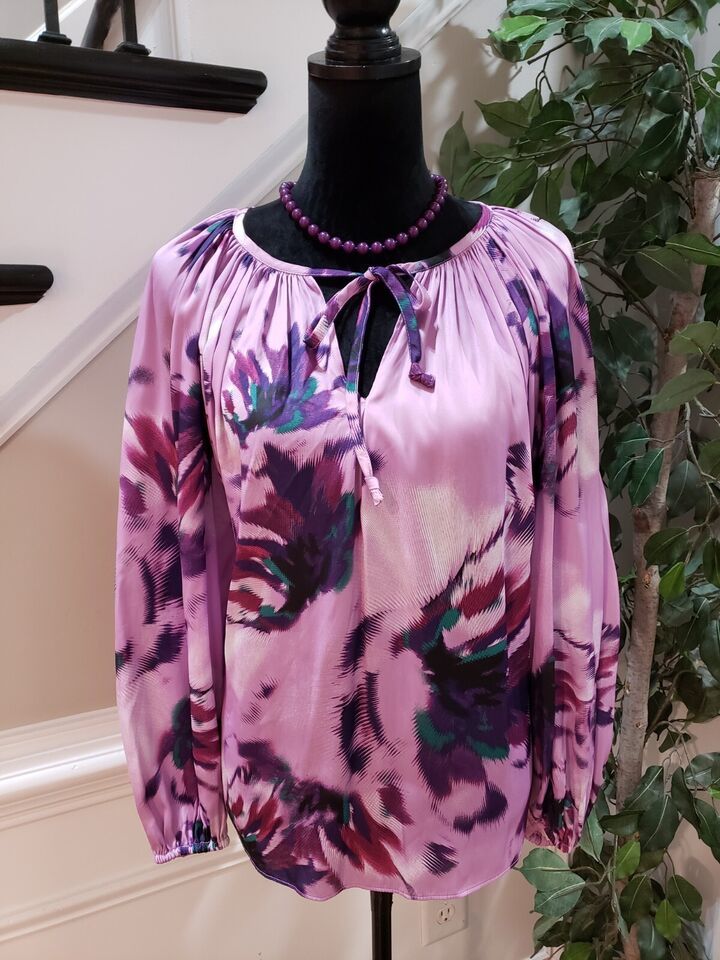 Jennifer Lopez Women's Purple Polyester Round Neck Long Sleeve Top Blouse Size M.