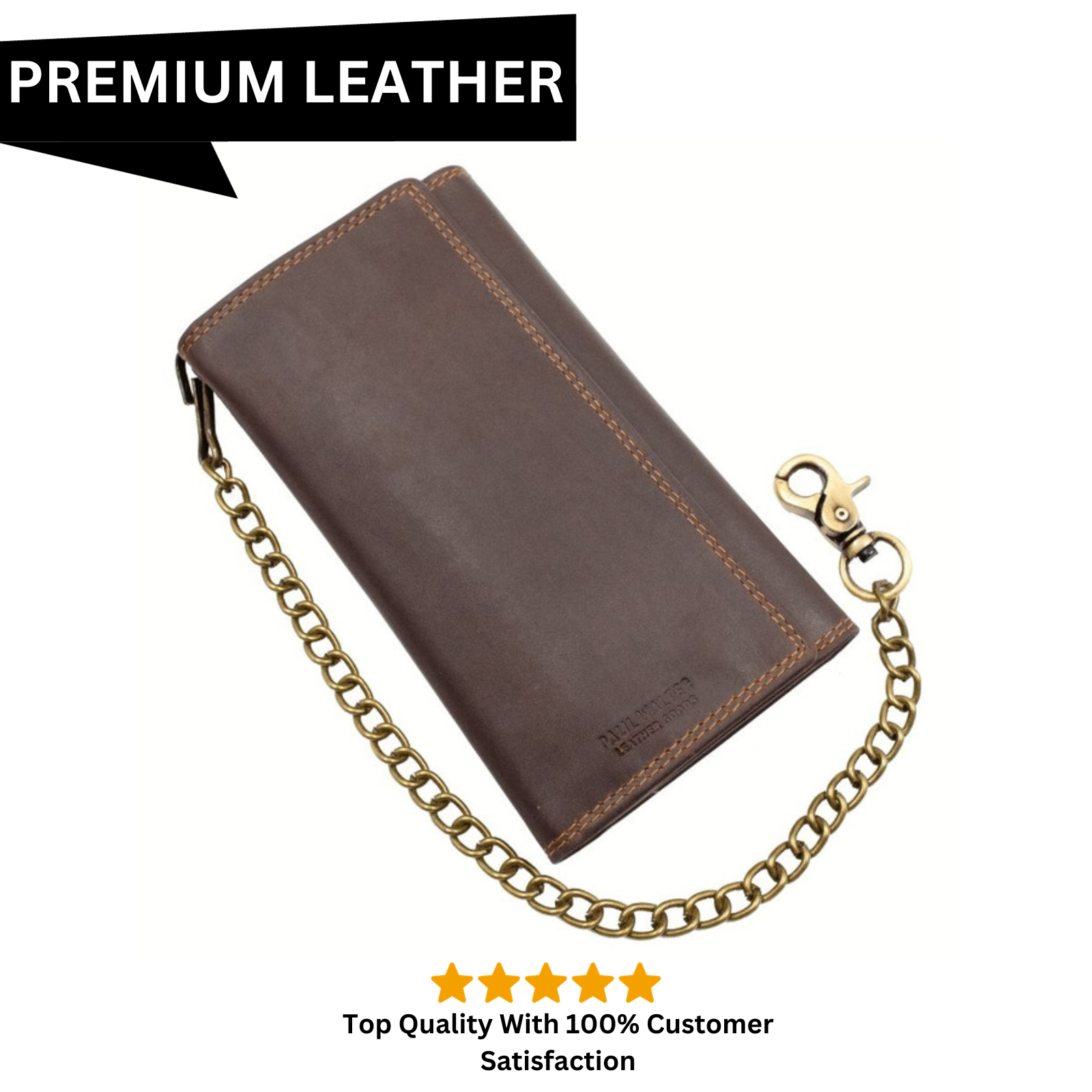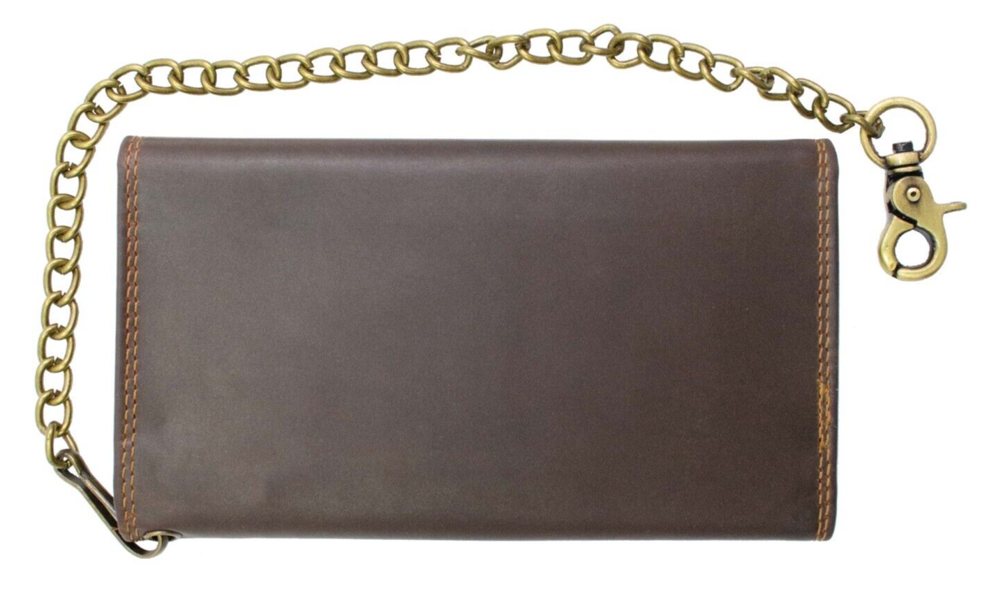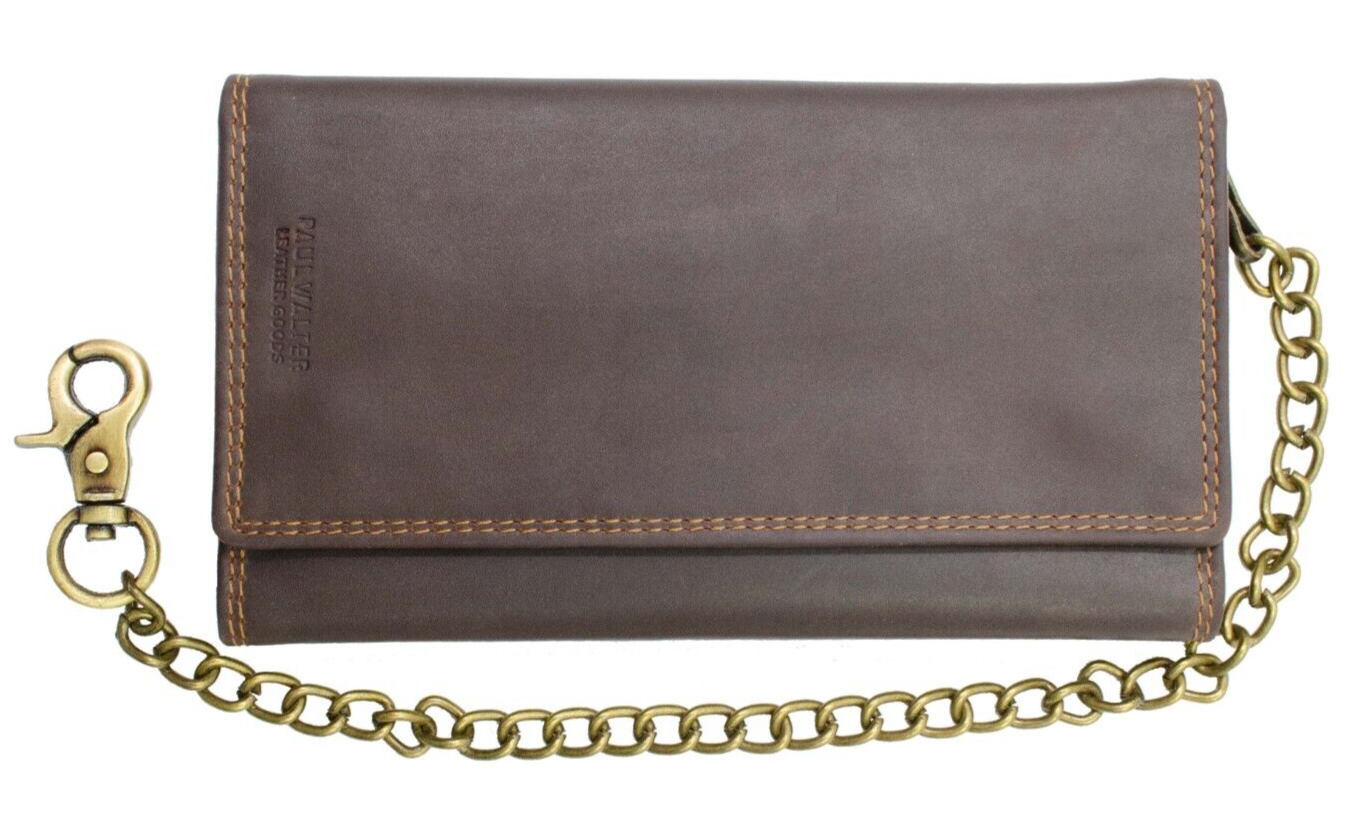 Paul Walter - Men's Biker Vintage Brown Hunter Leather Long Chain Wallet with RFID Blocking