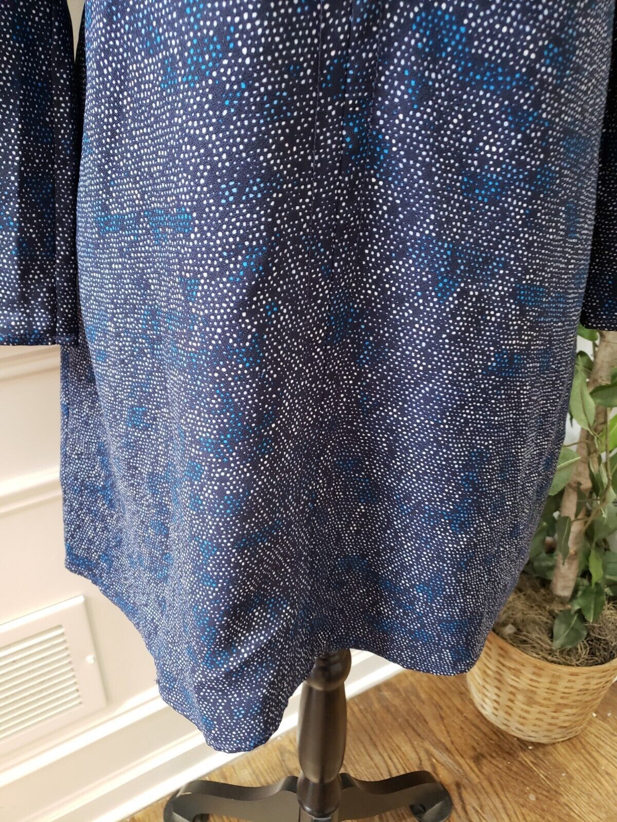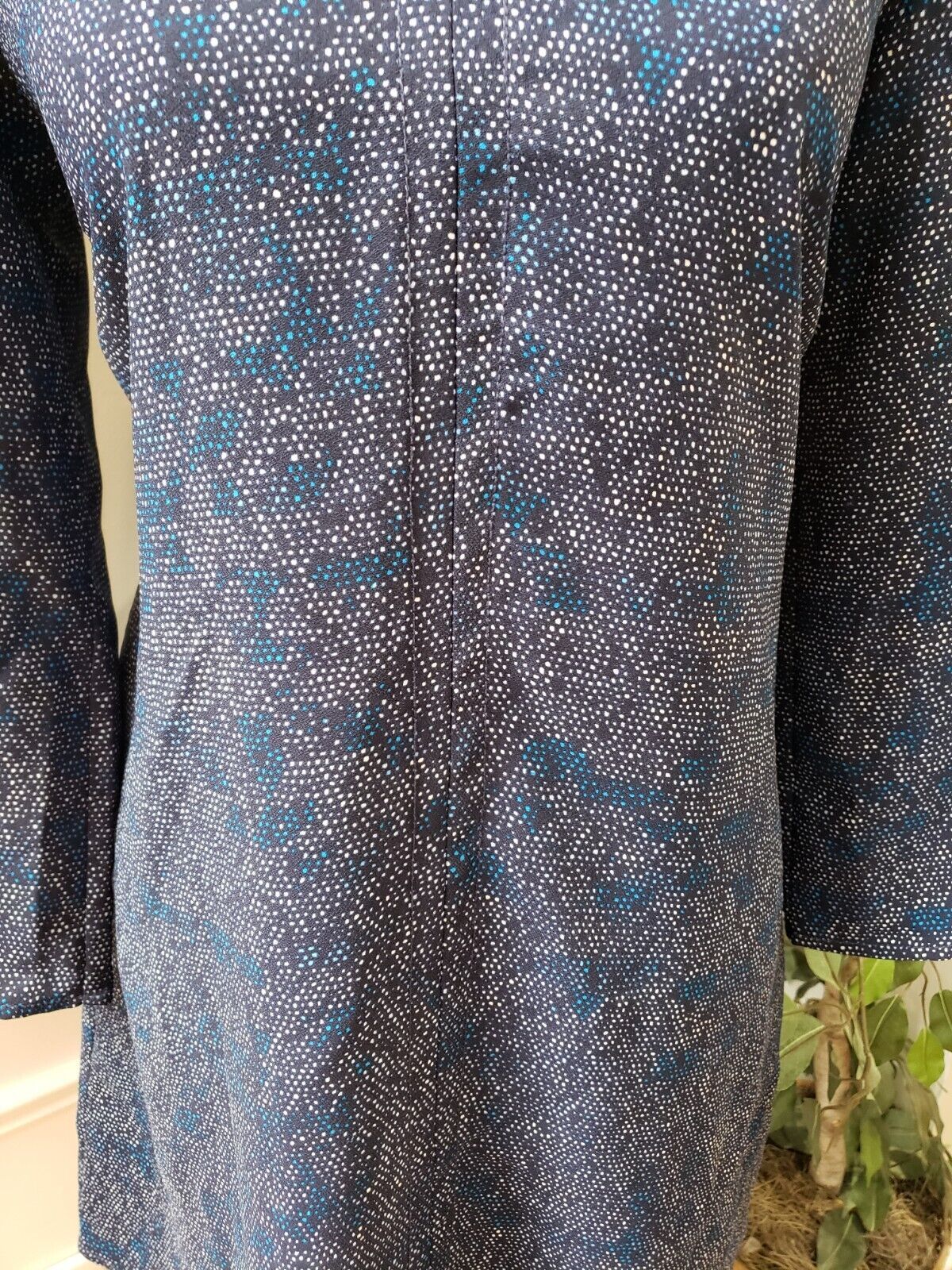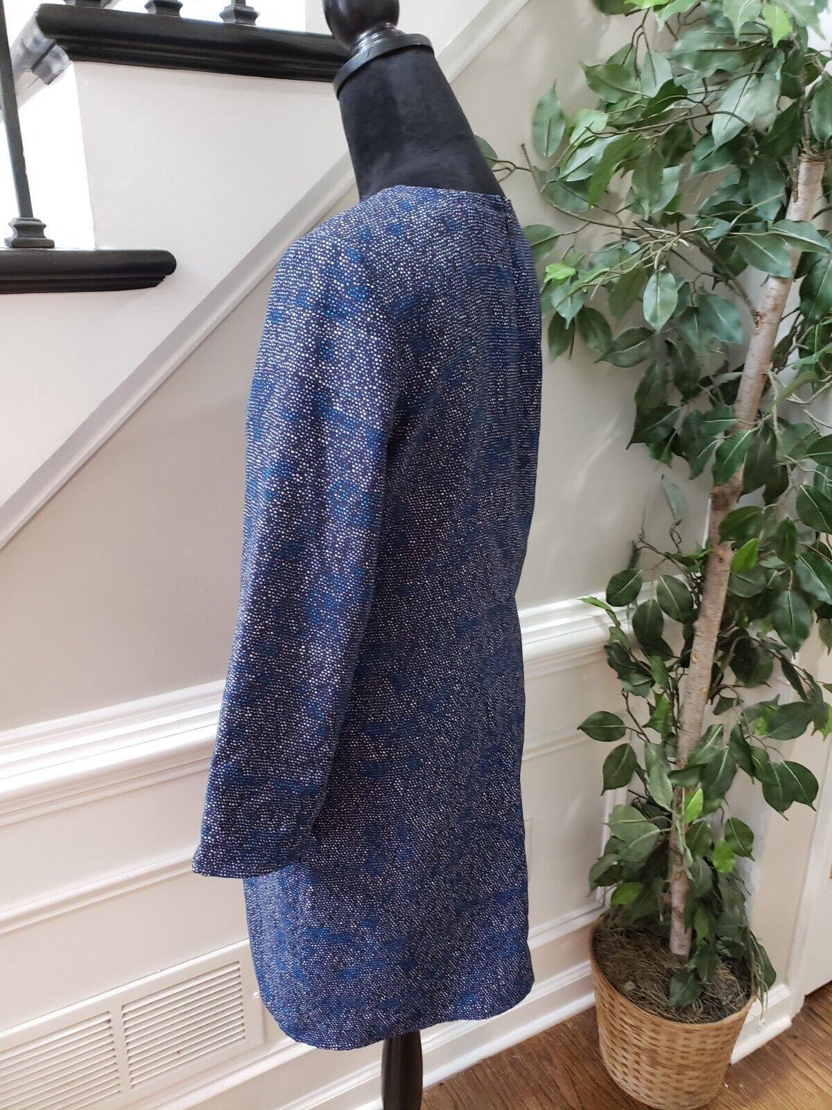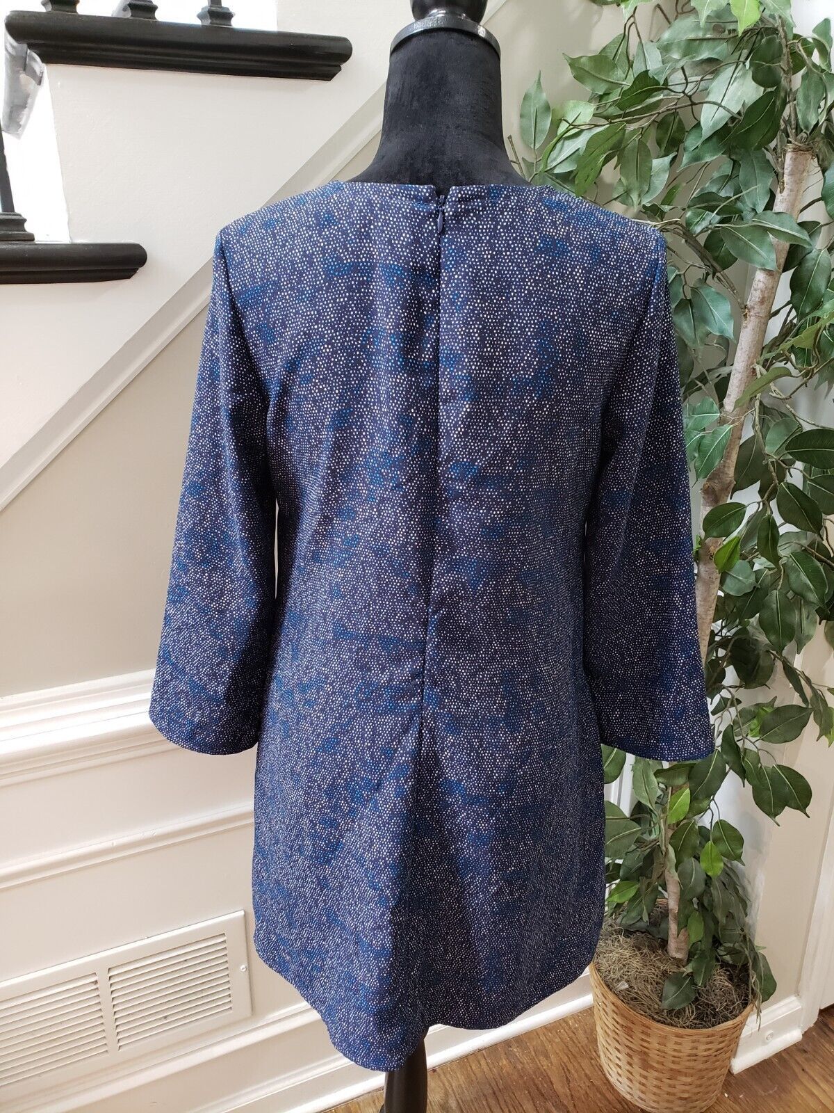 Gap Women's Blue & White 100% Polyester V-Neck Long Sleeve Knee Length Dress XS