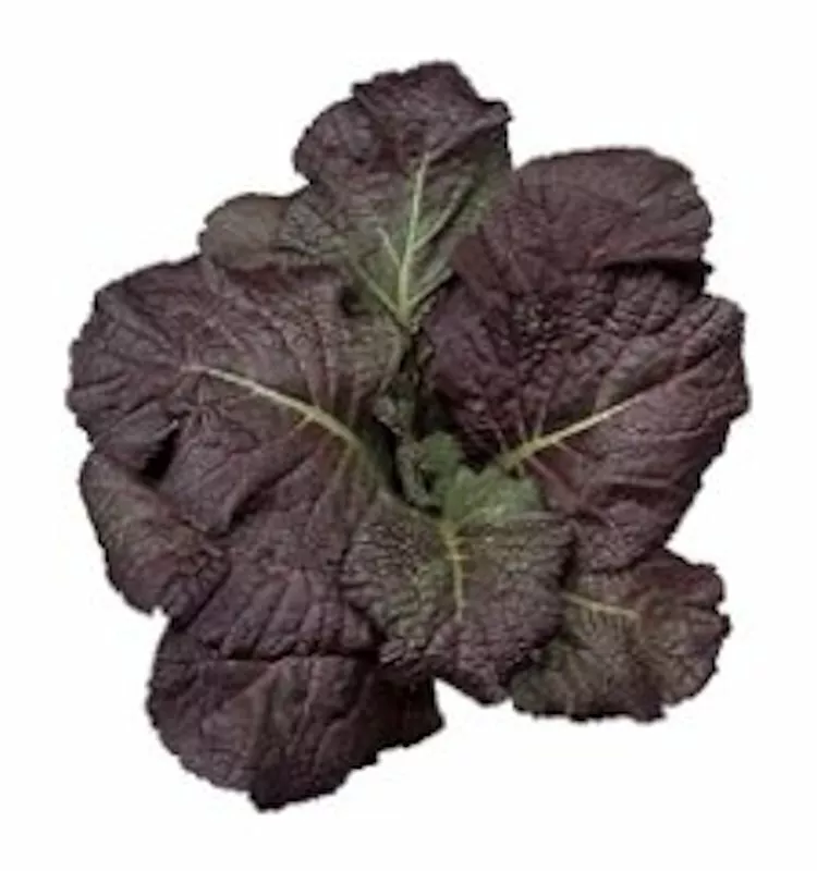 This vigorous growing broad leaf Japanese mustard is known for its mustard pungency and excellent for cooking and pickling. Large savoy leaves are deep purplish red with green mid ribs.