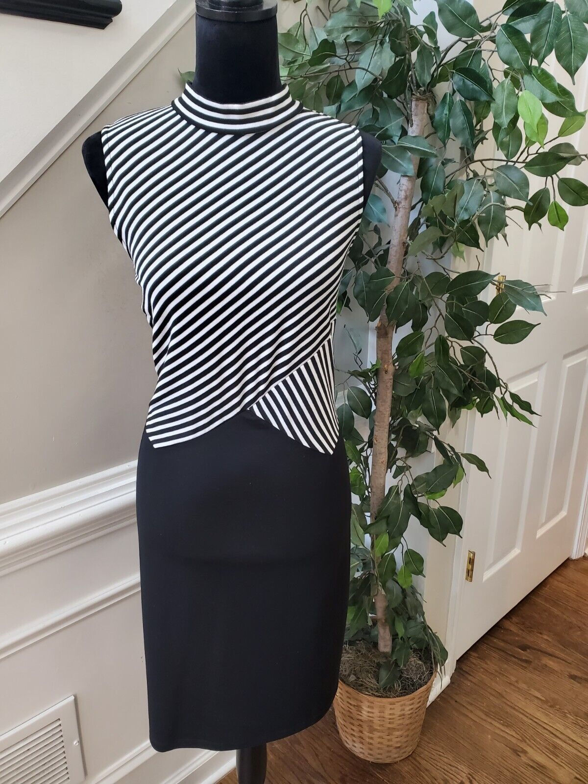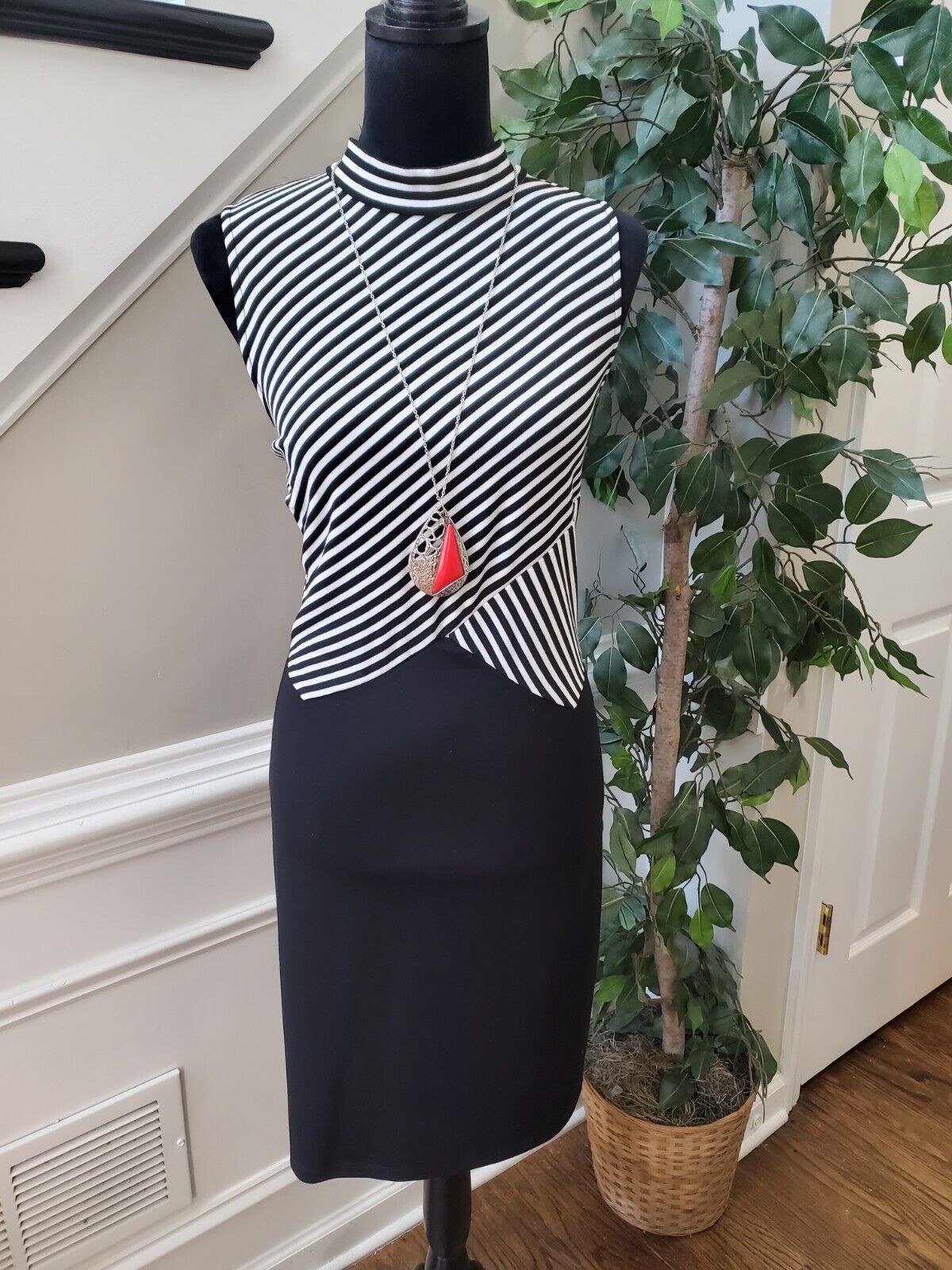 Forever 21 Women's White & Black Polyester Sleeveless Knee Length Dress Size L