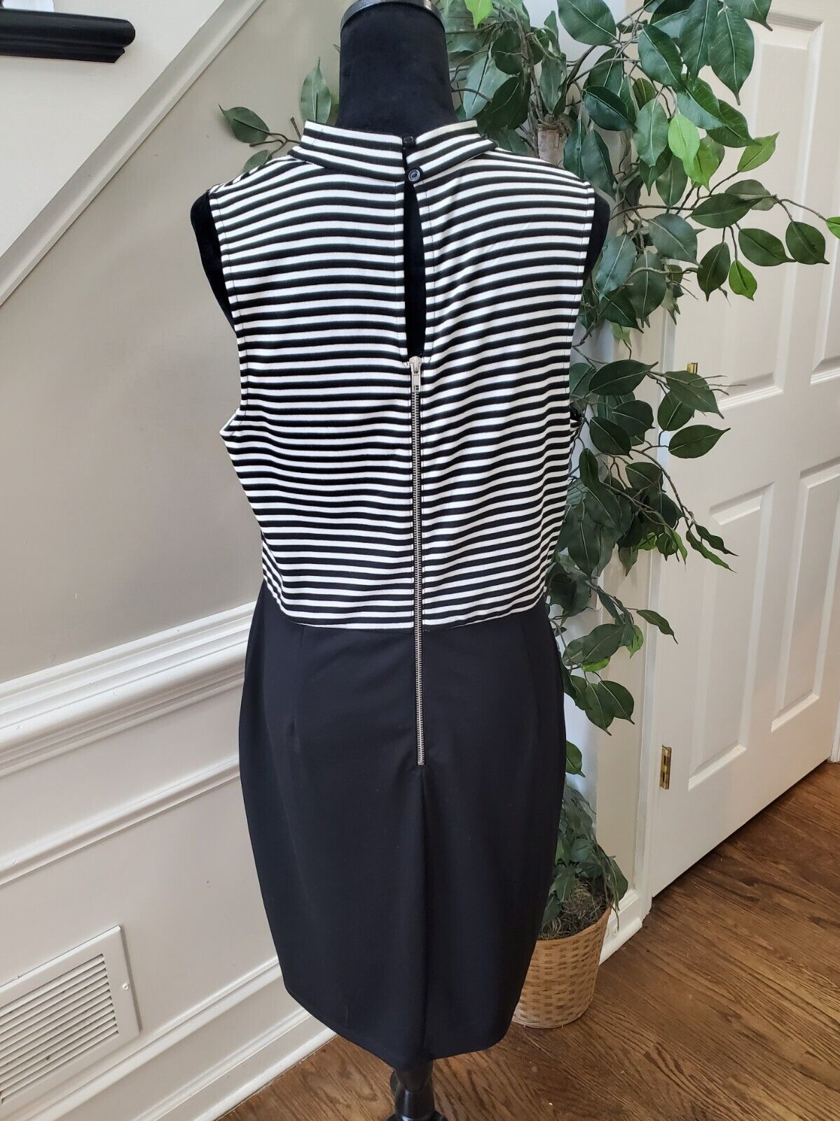 Forever 21 Women's White Black Polyester Sleeveless Knee Length Dress Size L Description Forever 21 Women's White Black Polyester Sleeveless Knee Length Dress Size L. Product Detail ? Brand : Forever 21 ? Size: L? Color: White Black ? Material: Polyester ? Type: Knee Length Dress ? Department: Women's ? Neck Style: Mock Neck ? Sleeve Length: Sleeveless Please message me if you have any questions. I stand by all of my items before and after purchase. Please see my feedback.